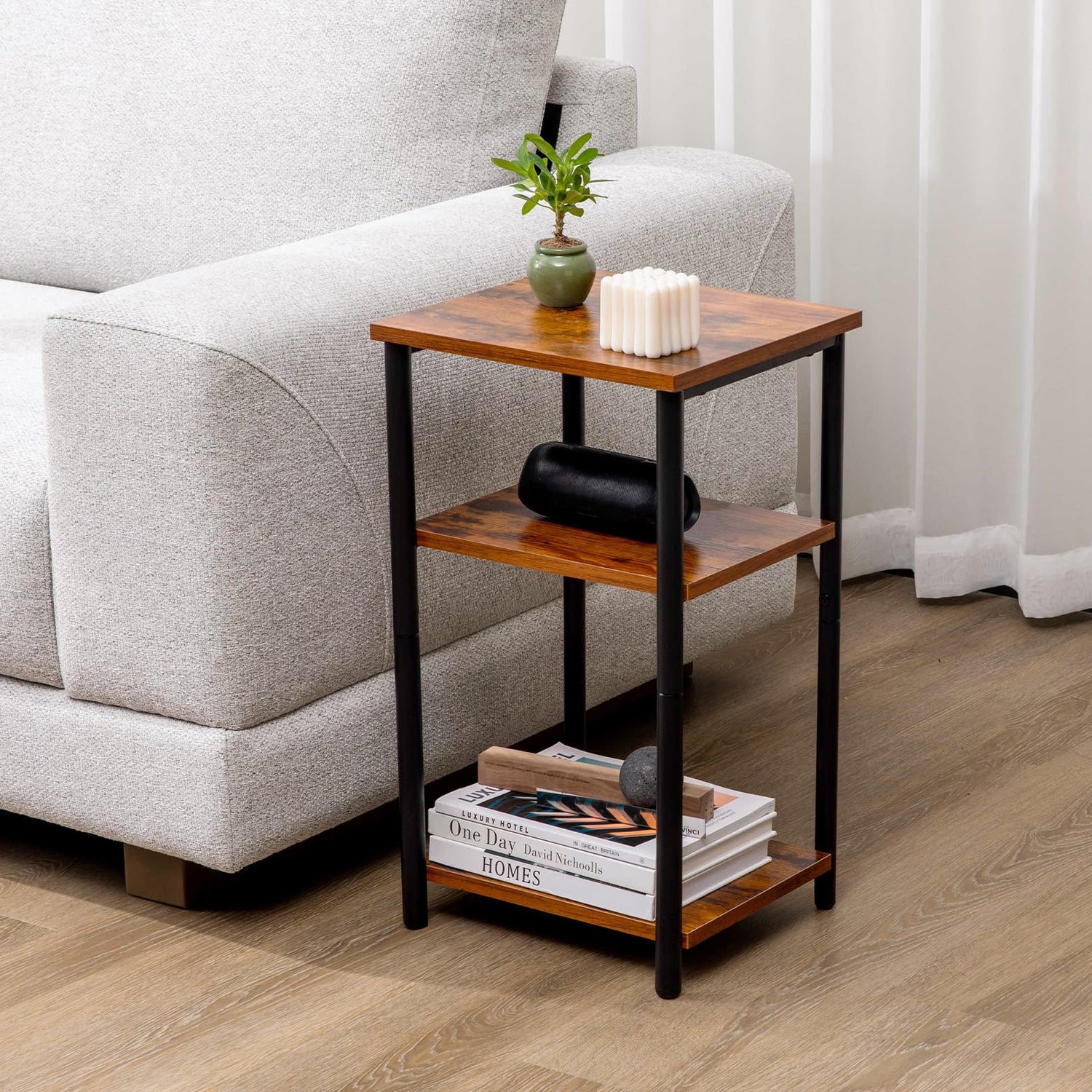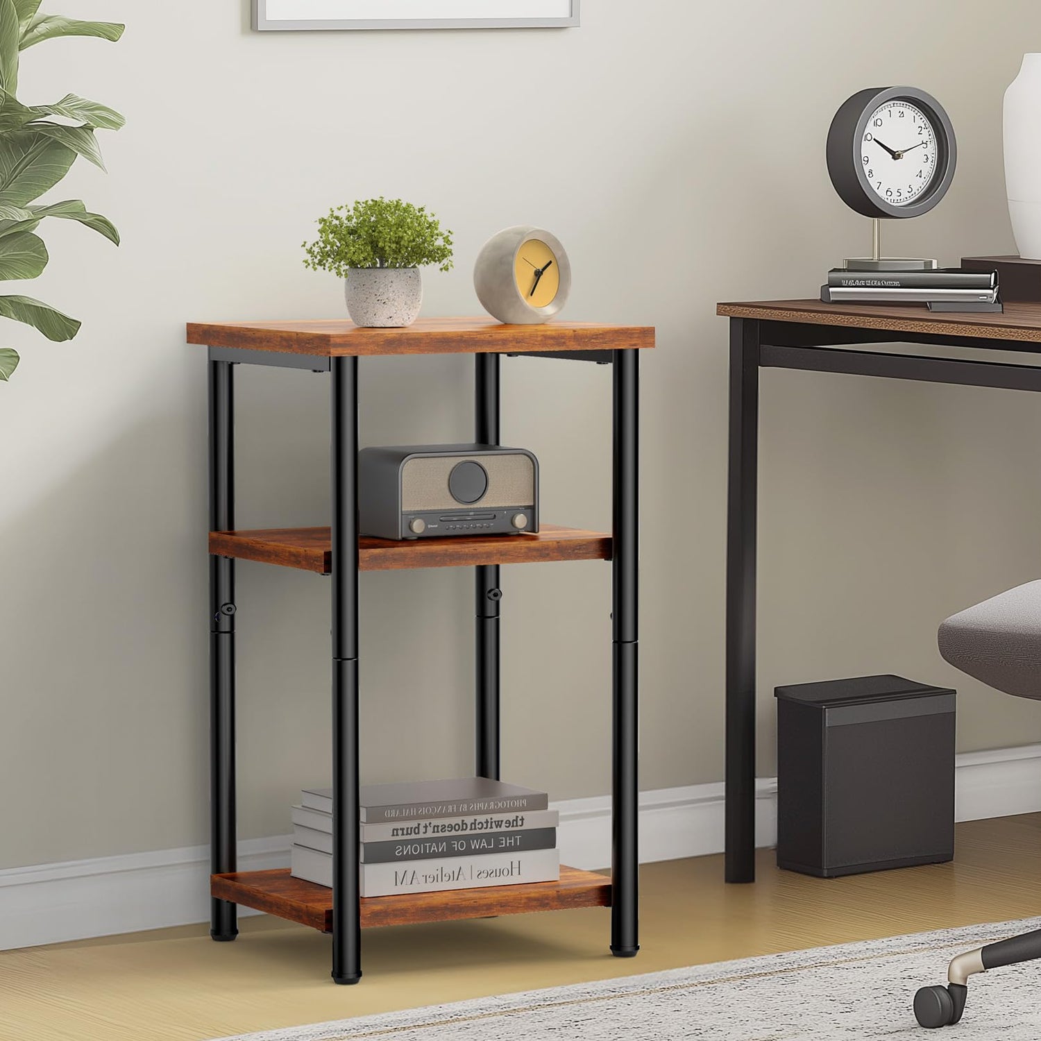 Sweetcrispy 3-Tier End Table Side Tables with Adjustable Feet,Small Nightstand Space-Saving for Bedroom Living Room Office, Rustic Brown