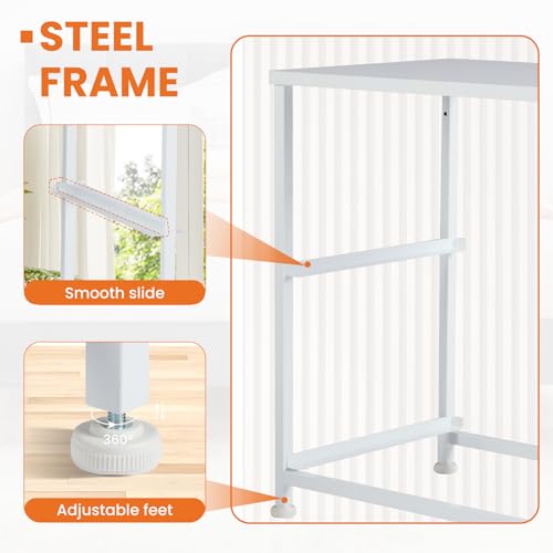 - Adjustable Feet: To ensure stability, this end table is designed with 4 adjustable feet. These feet can be adjusted to keep the nightstand stable and prevent it from shaking on uneven floors. There is also an end stop design at back of the frame, which prevents the organization drawers from tilting backward.
