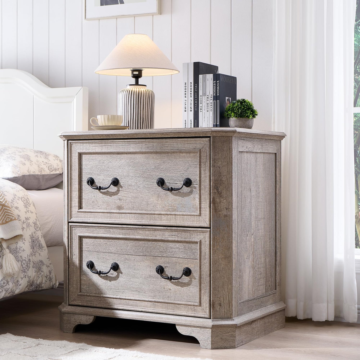 - Farmhouse Charm Meets Modern Practicality: With a 30" wide natural wood veneer desktop and hand-polished Roman column mushroom knobs, this farmhouse nightstand combines rustic elegance with modern functionality. Framed drawer fronts, refined lines, and heavy-duty materials add warmth and sophistication to any space