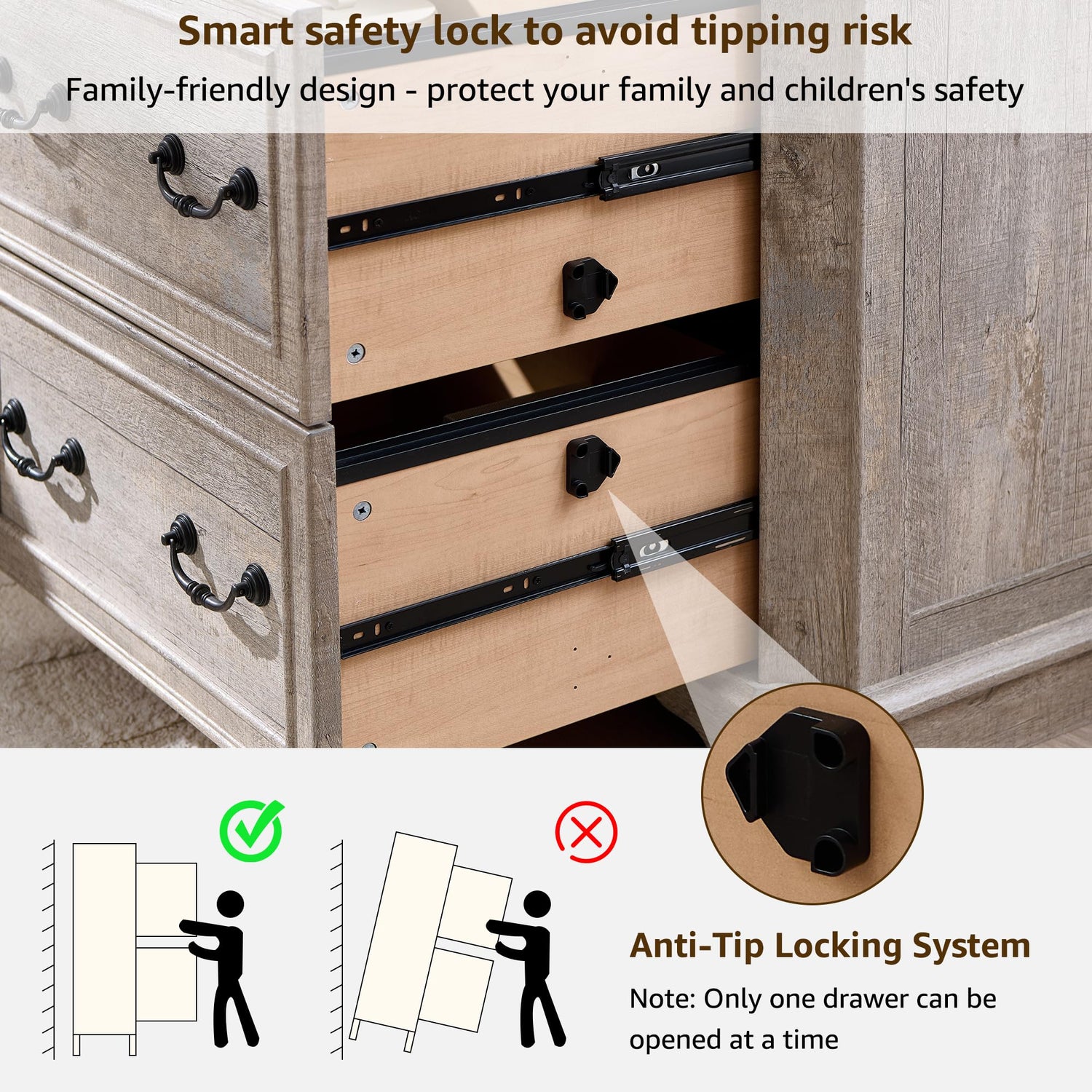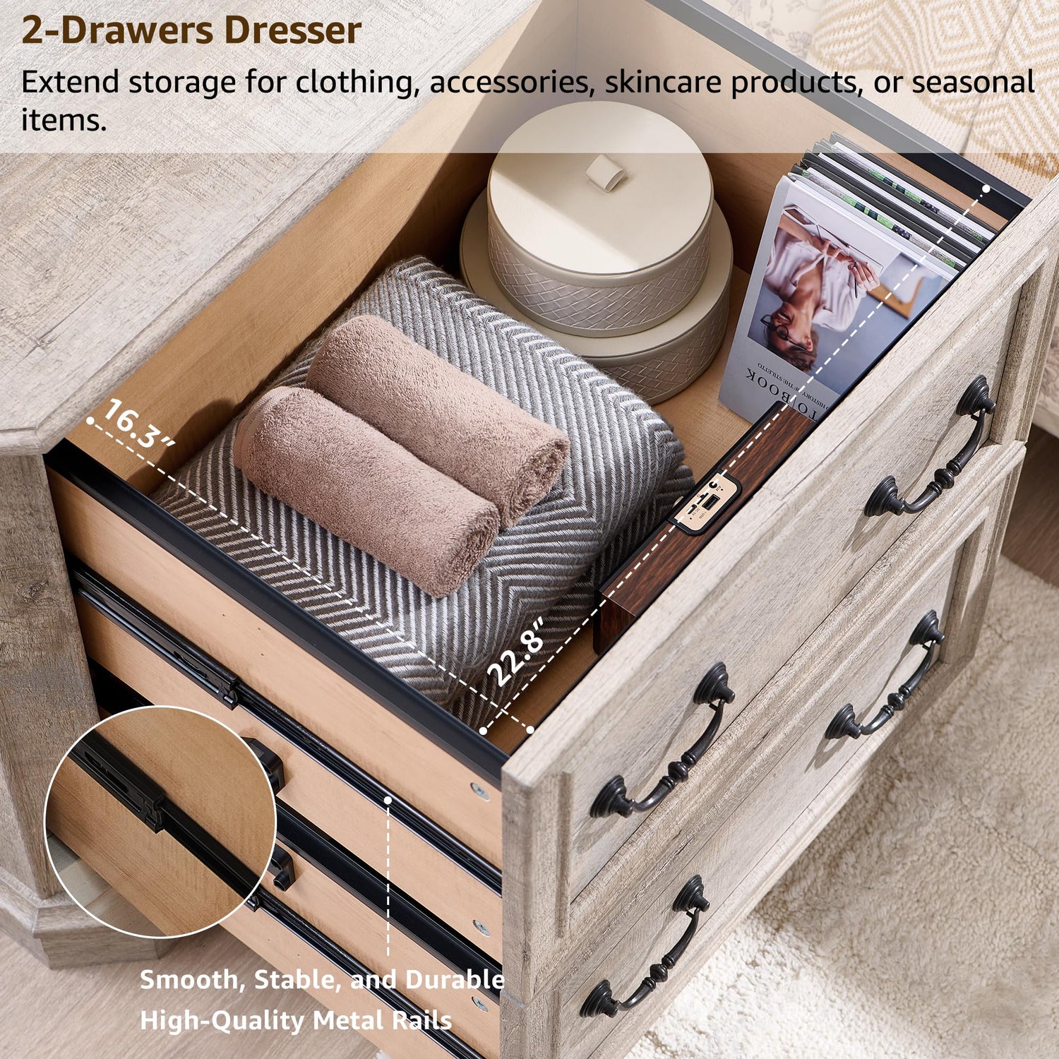 - Deep Dual Drawer Storage with Versatile Use: Designed with two spacious drawers (22.8"L x 16.3"W x 10.2"D), this side table offers ample room to organize clothes, books, or even Letter/Legal/A4/F4 files using the included adjustable hanging rod. Smooth metal glides ensure effortless opening, and the anti-tip interlock system enhances safety