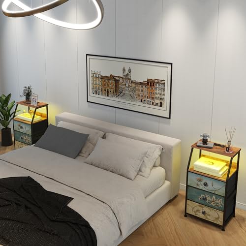 Tohomeor Dresser with Fabric Drawers Nightstand with 2 Tier Shelf Storage Tower for Bedroom Hallway Entryway Closet Organizer Sofa Beside Table Furniture (Multi, 3 Drawers)