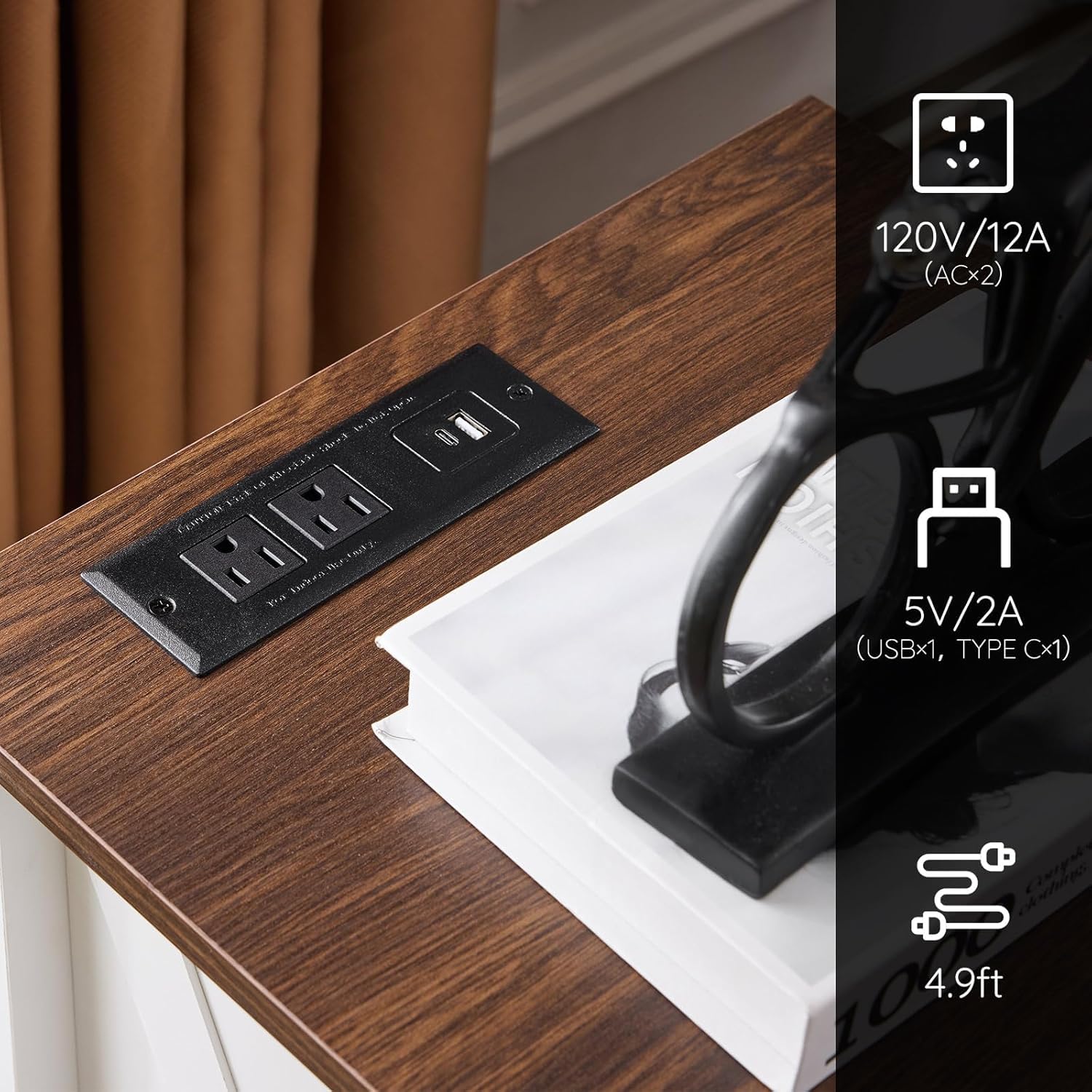 • NIGHTSTAND WITH CHARGING STATION: The white nightstand with a built-in charging station features 2 outlets, 1 USB port, and 1 Type C port, making it compatible with nearly all electronic devices. You can conveniently charge smartphones, tablets, bedside lamps, and more directly from this modern nightstand. Say goodbye to the hassle of limited outlets and enjoy easy access to power for all your devices