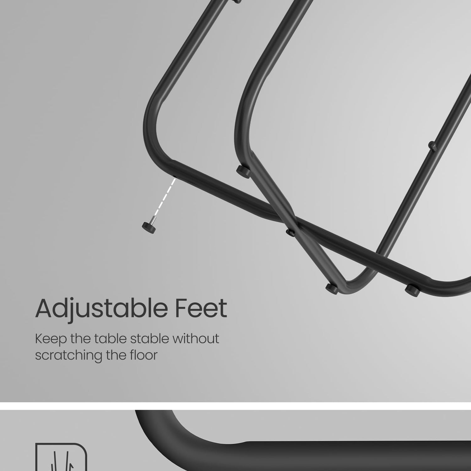 • [Sturdy and Stable] The sturdy particleboard tabletop is fixed to the frame without wobbling. The one-piece U-shaped steel legs offer solid support. The adjustable feet increase the stability and don't scratch the floor