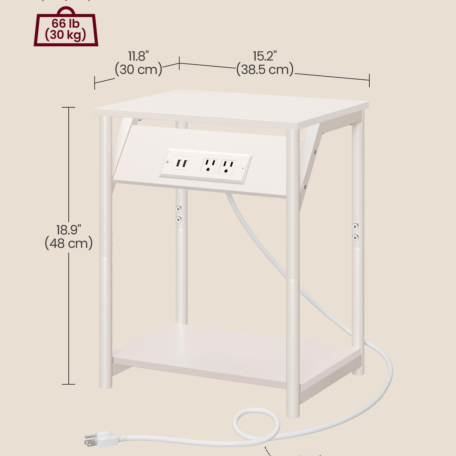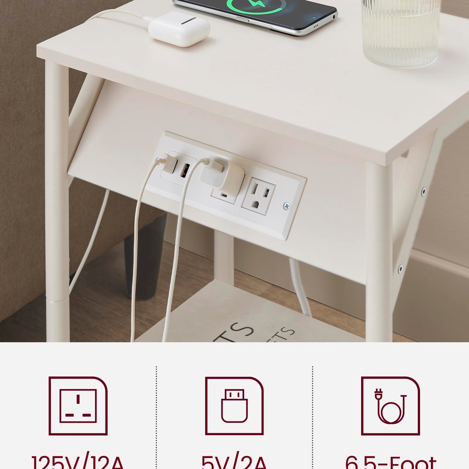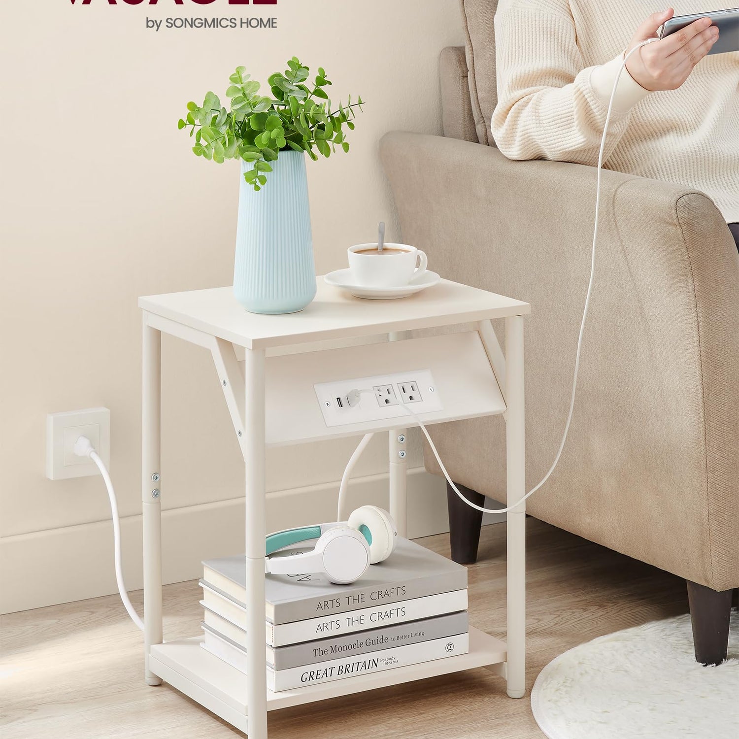 VASAGLE End Table with Charging Station, Set of 2, Small Side Tables for Living Room, Bedroom, Nightstand with Outlets and USB Ports, Bedside Table with Storage Shelf, Cream White