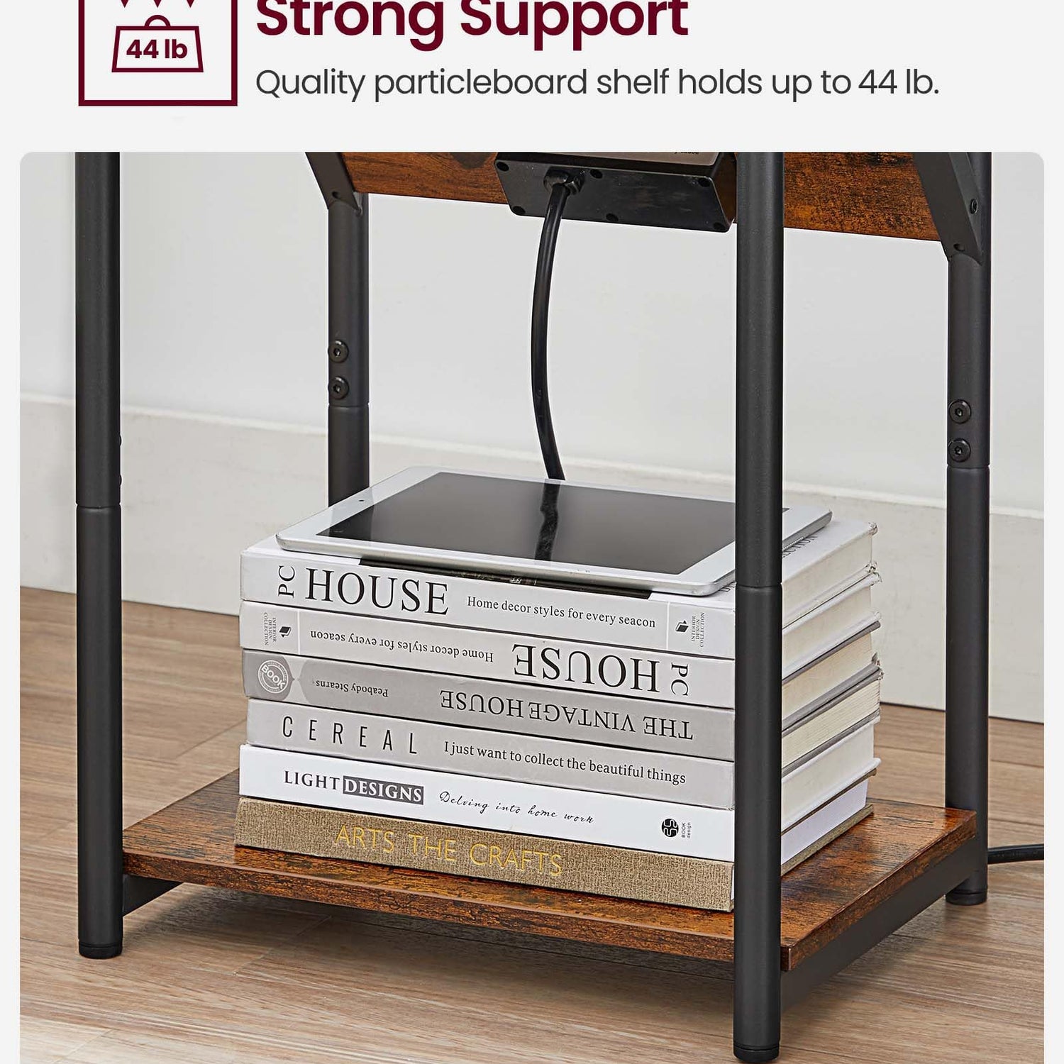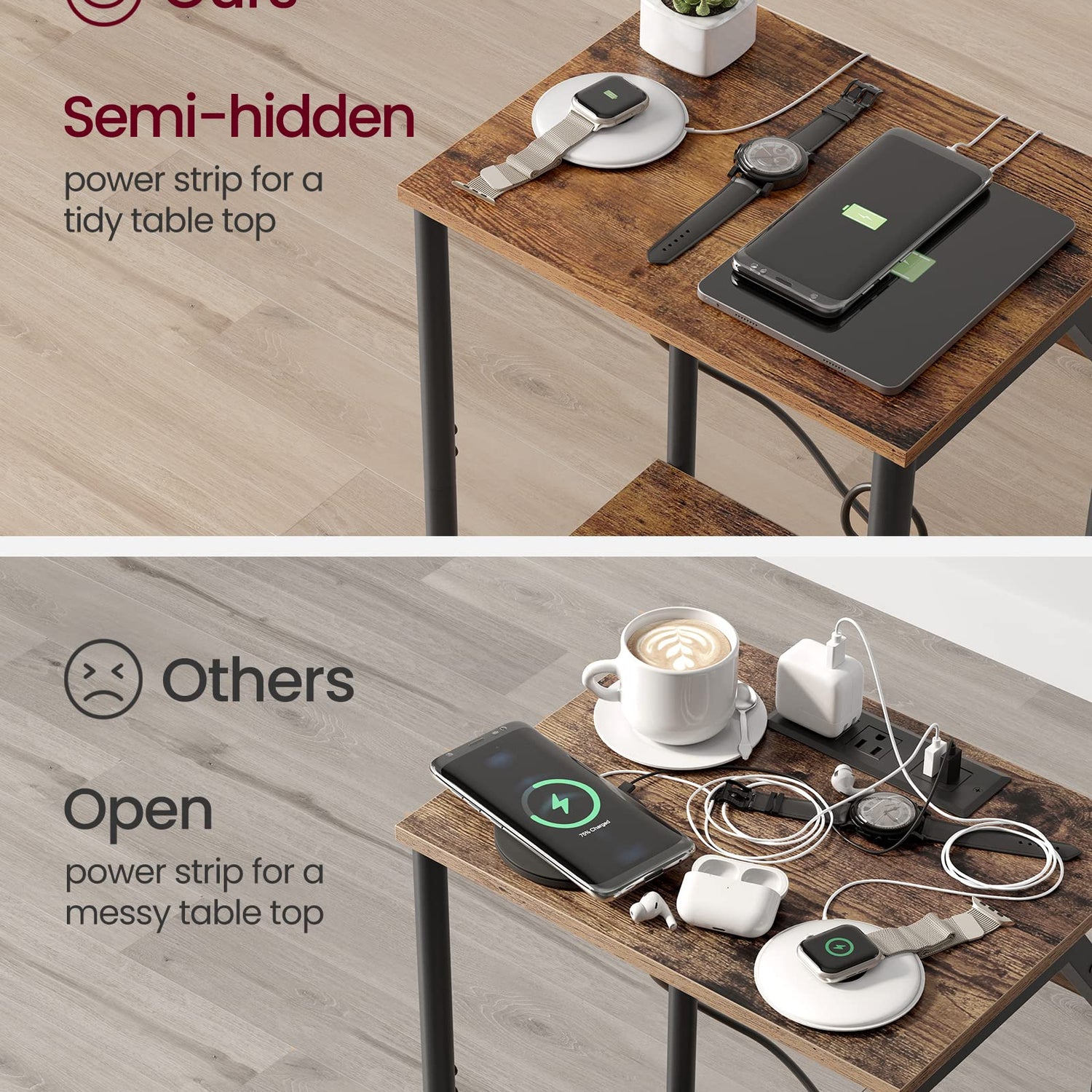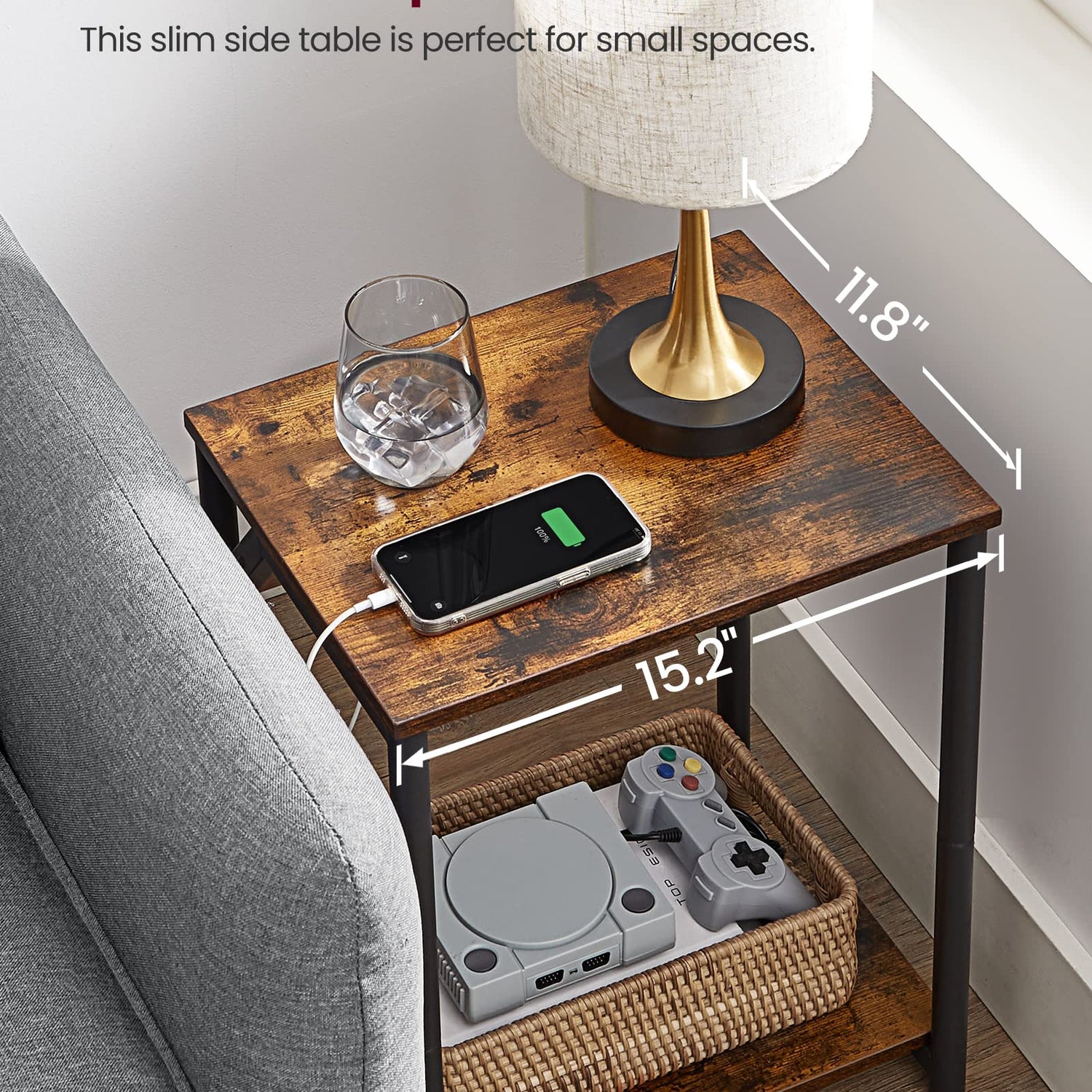 VASAGLE End Table with Charging Station, Small Side Table for Living Room, Bedroom, Nightstand with Outlets and USB Ports, Bedside Table with Storage Shelf, Rustic Brown and Black