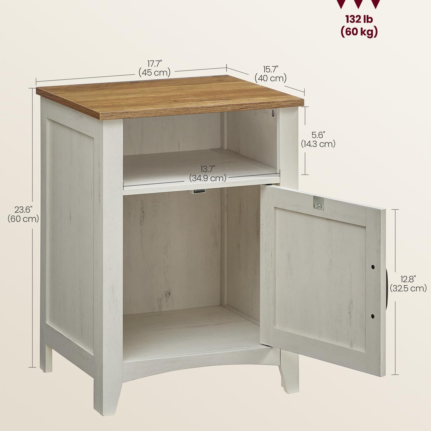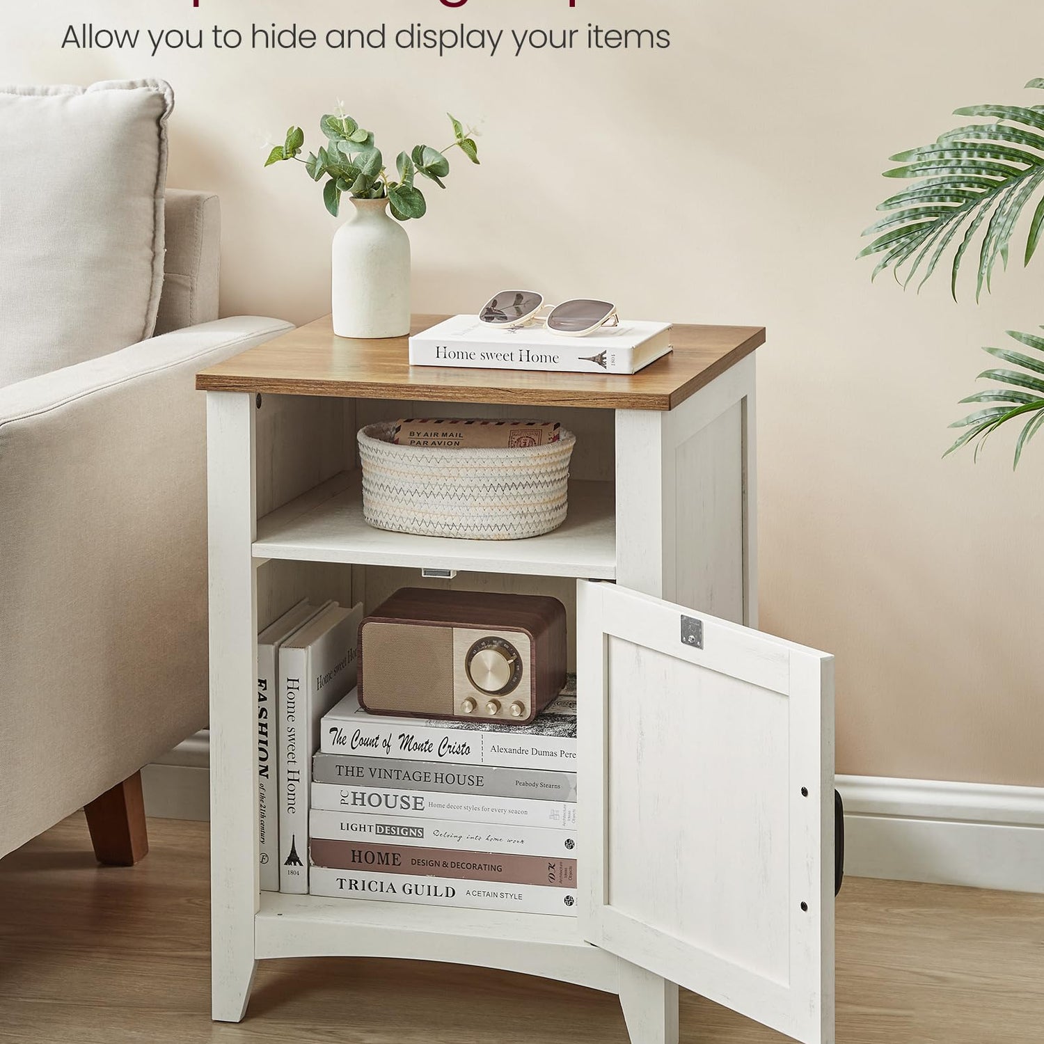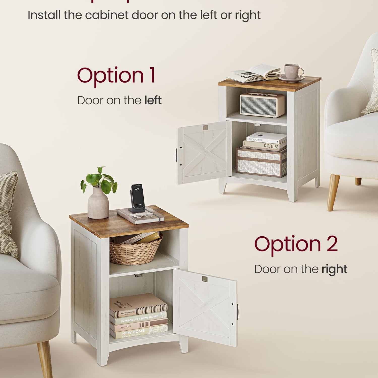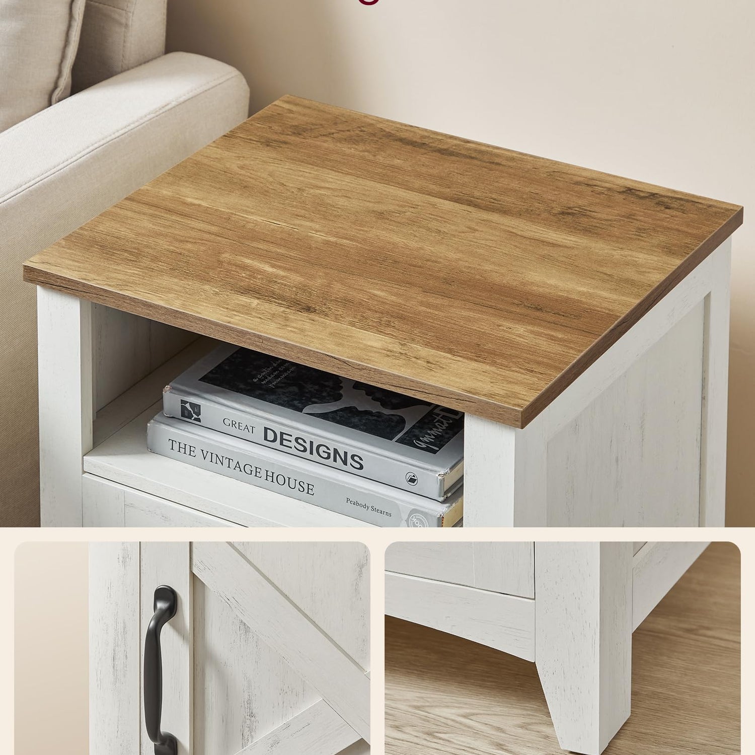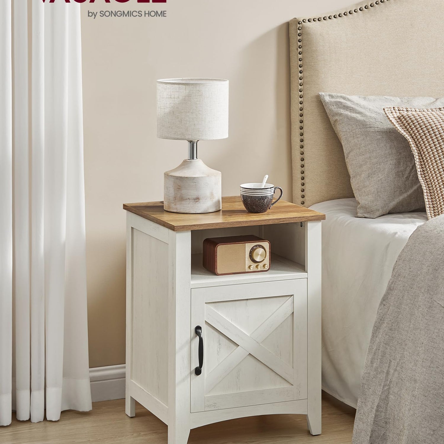 VASAGLE LIRY Collection - Farmhouse Nightstand with Barn Door, Bedside Table with Storage, Side End Table, Night Stand, Open Compartment, for Bedroom, Rustic White and Honey Brown ULET609K41