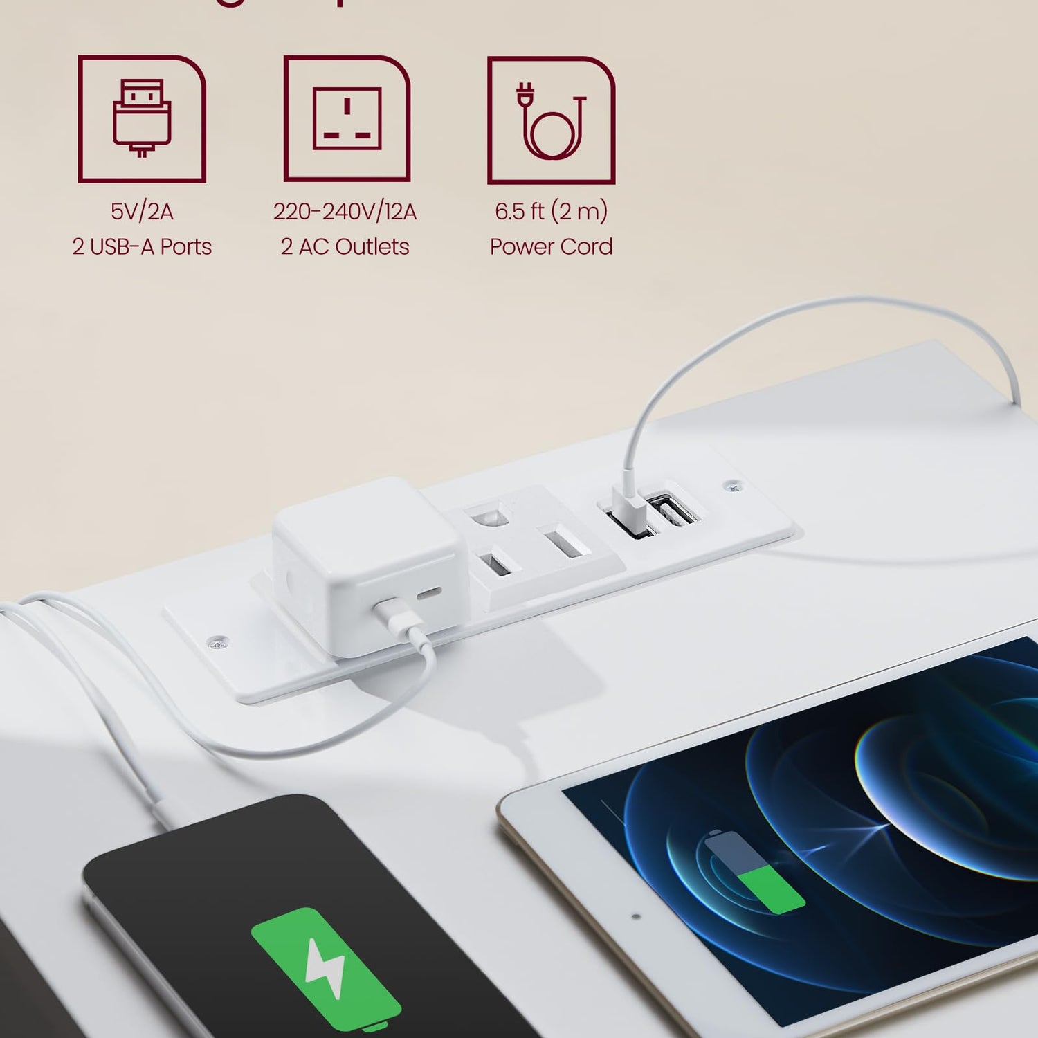 - 【CONVENIENT CHARGING STATION】With a built-in power strip that includes 2 AC outlets and 2 USB ports, plus a 6.5 ft extension cord, you can power up all your essential devices, from your mobile phone and tablet to your lamp and laptop, right from your bed