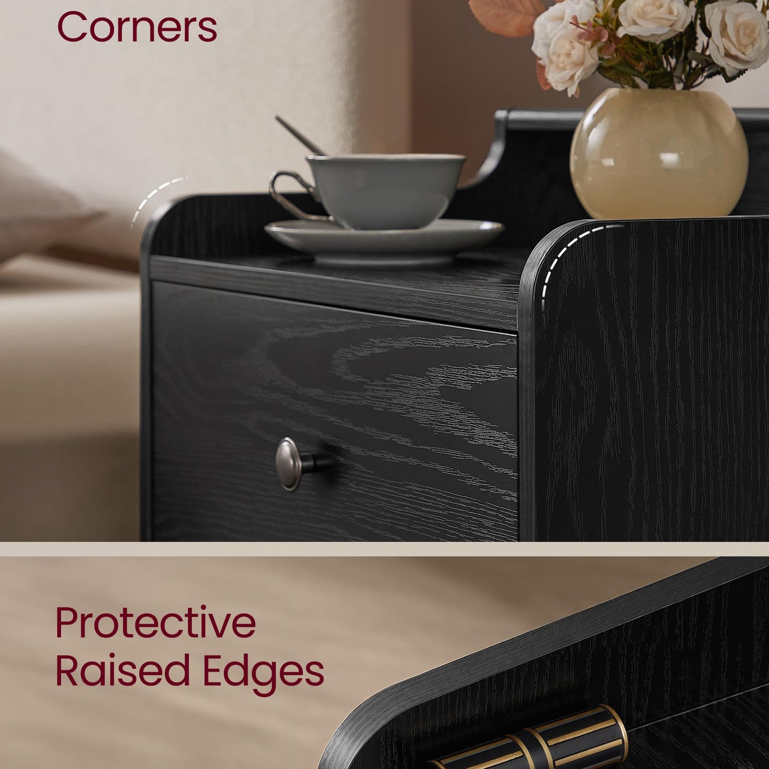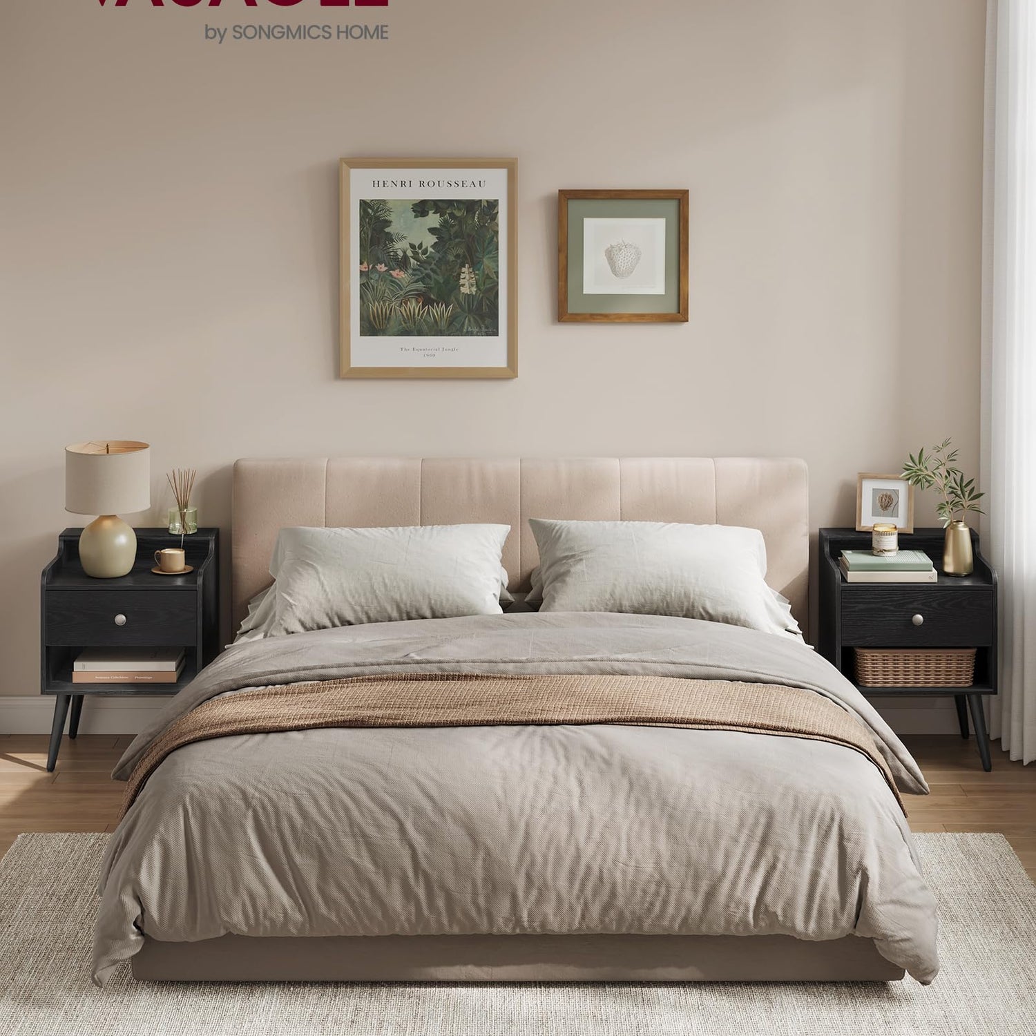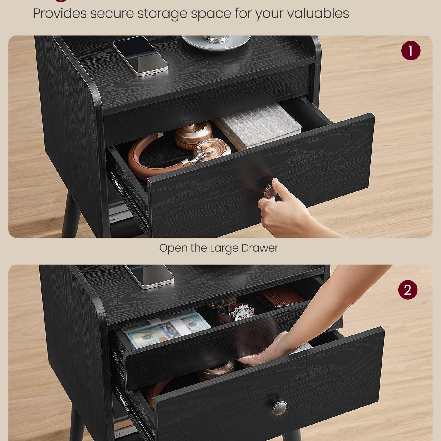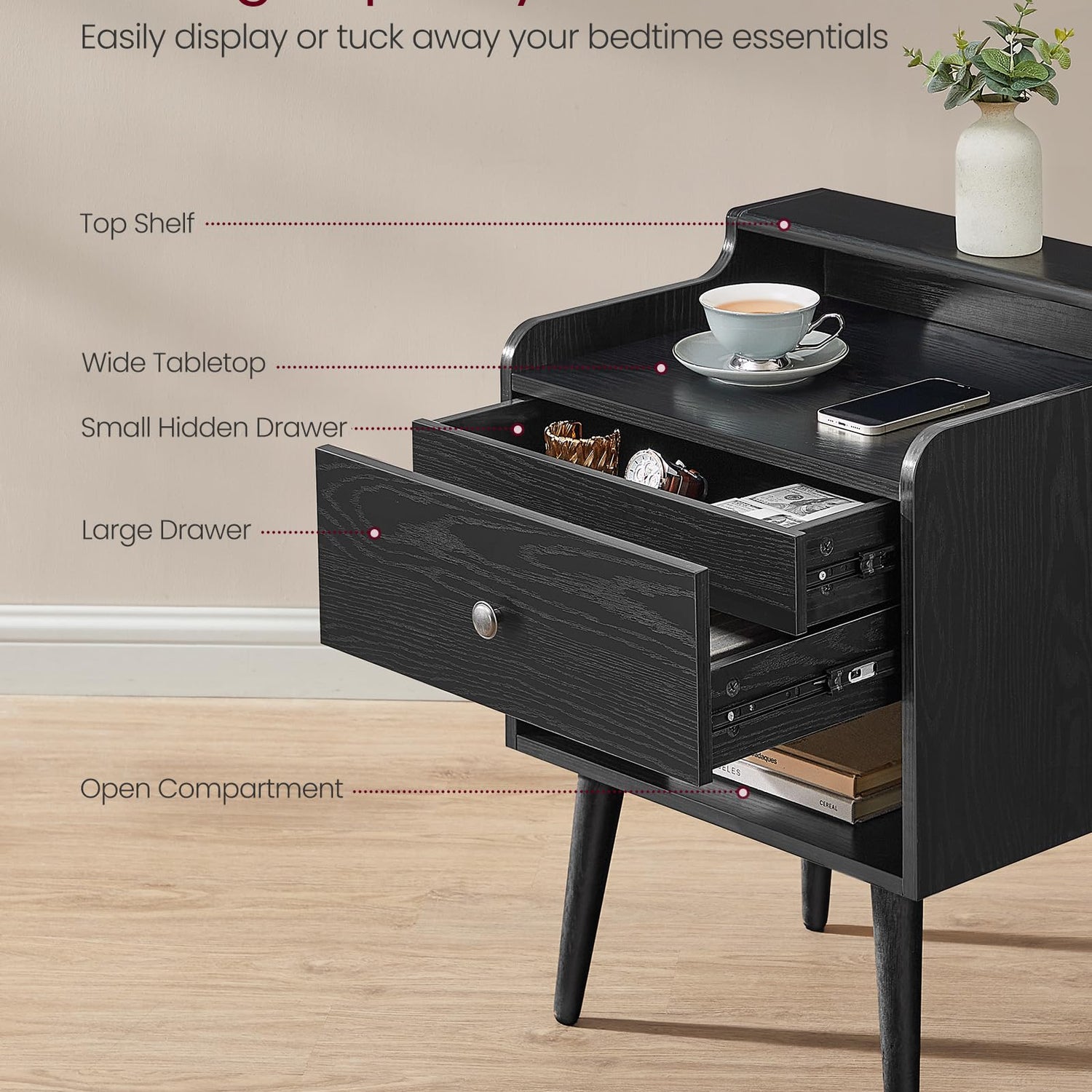 VASAGLE Nightstands, Set of 2, Bedside Tables with Hidden Drawers, Mid-Century End Tables, Ebony Black