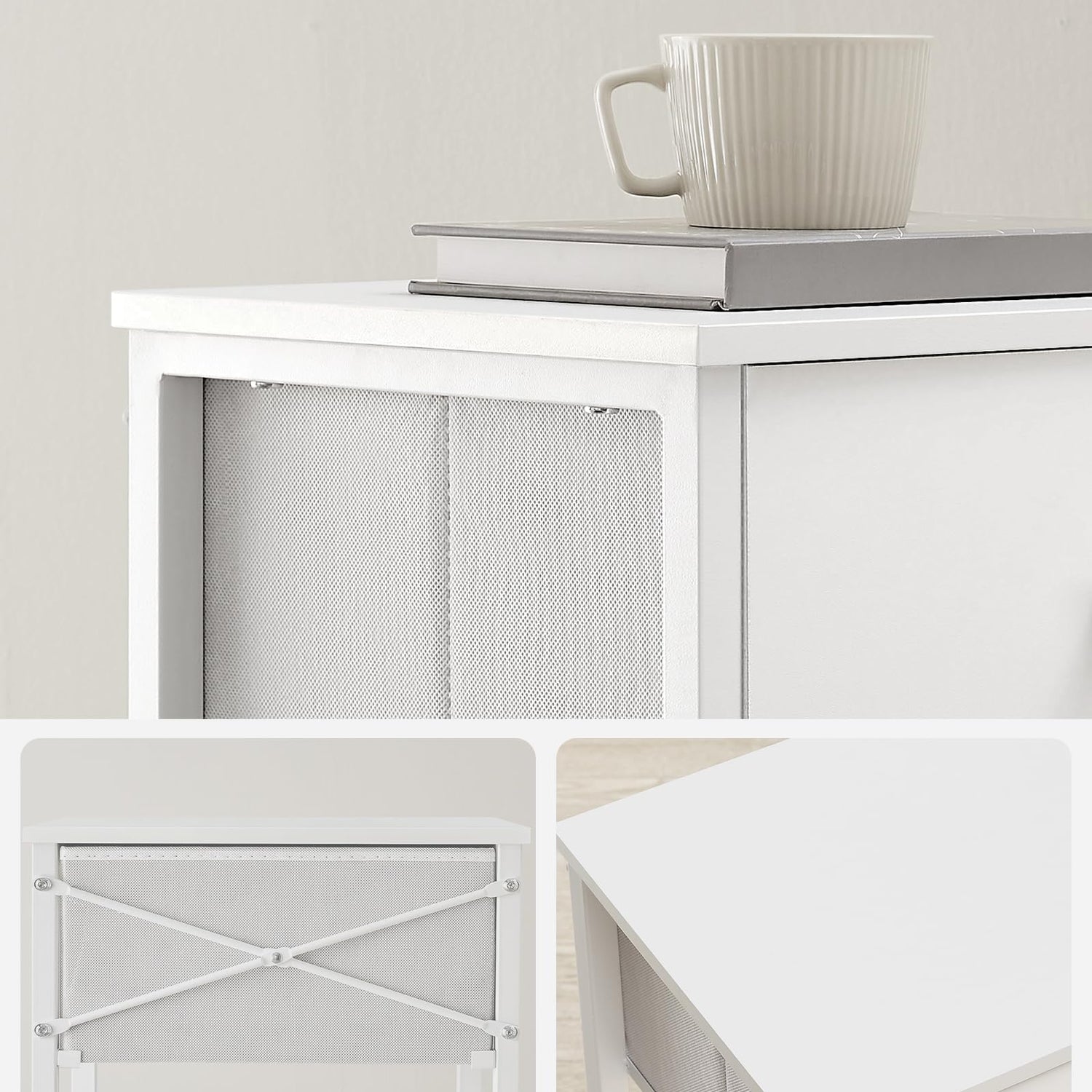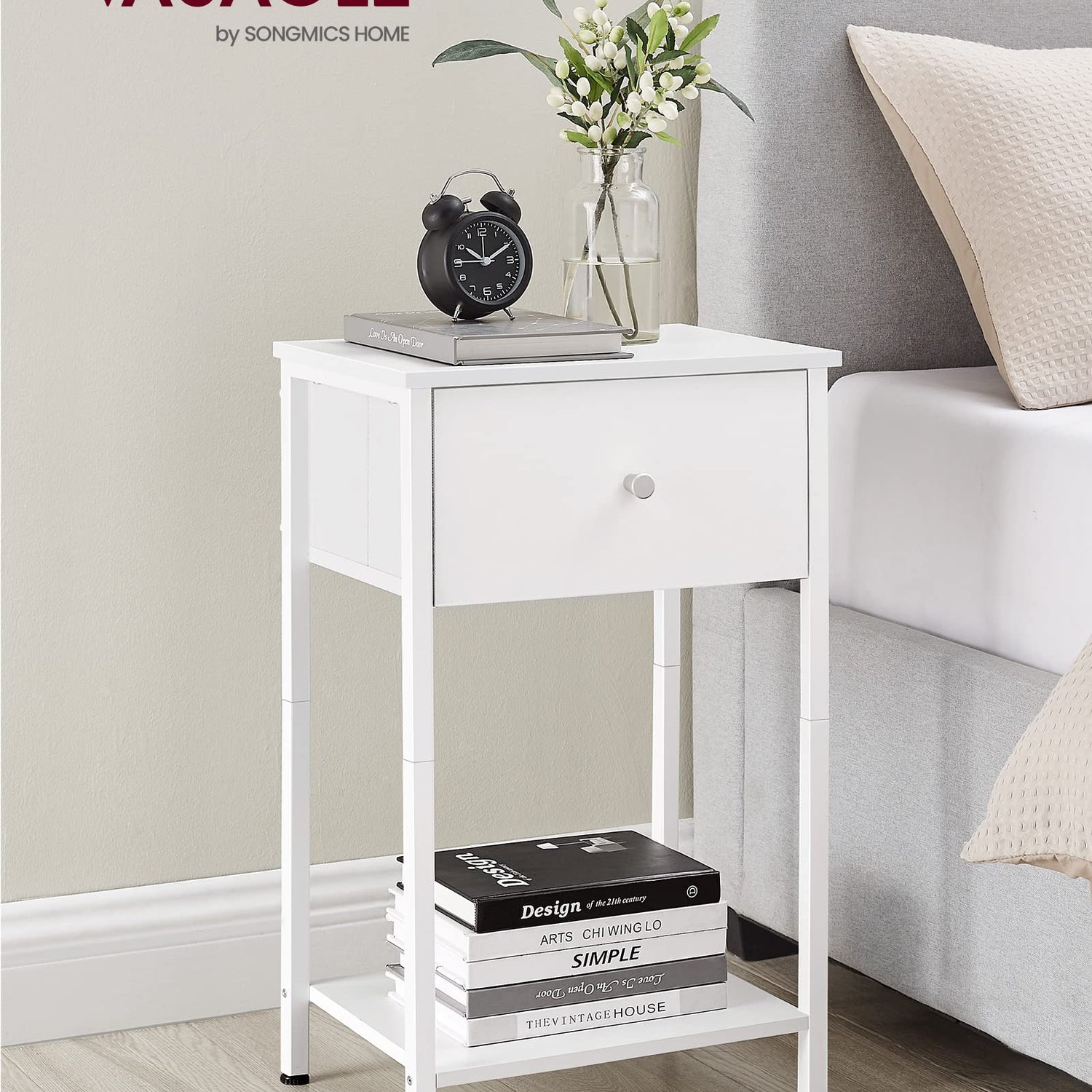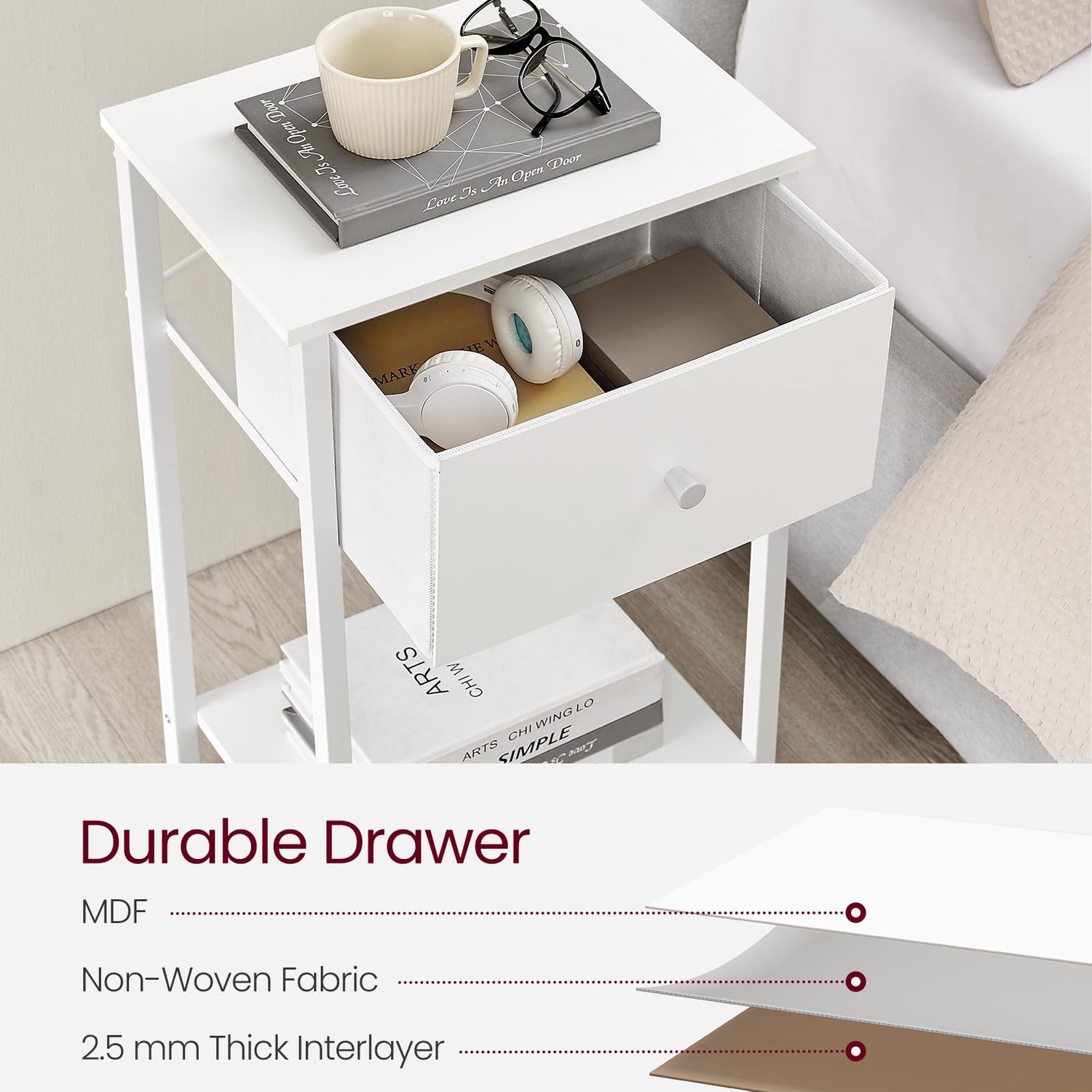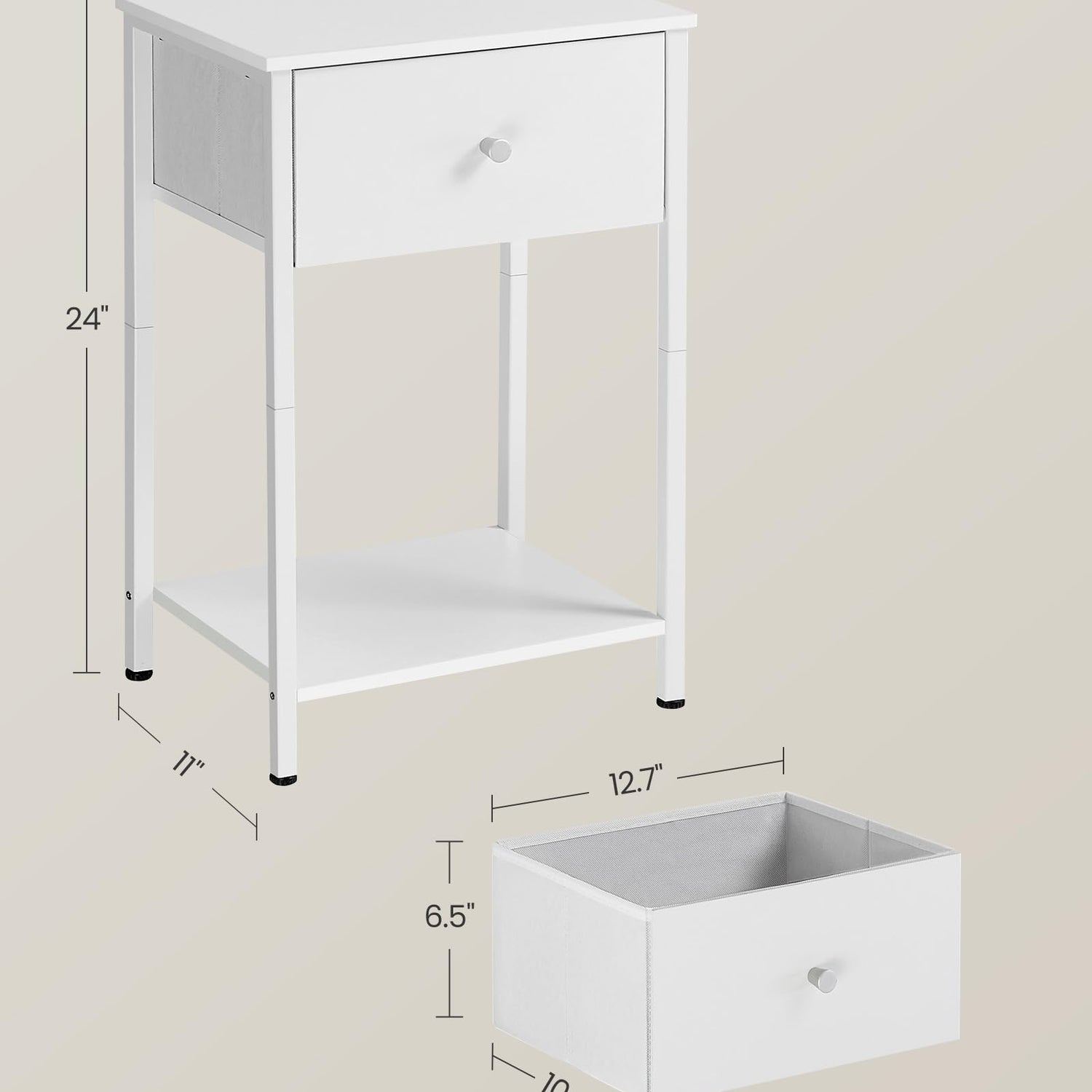 VASAGLE Nightstands, Set of 2 Side Tables with Fabric Drawer, 24-Inch Tall End Tables with Storage Shelf, Bedroom, White ULGS221W14