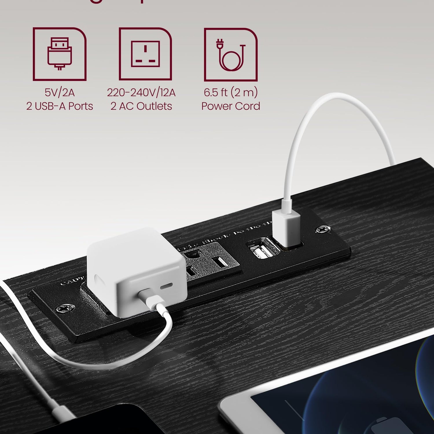 - 【CONVENIENT CHARGING STATION】With a built-in power strip that includes 2 AC outlets and 2 USB ports, plus a 6.5 ft extension cord, you can power up all your essential devices, from your mobile phone and tablet to your lamp and laptop, right from your bed