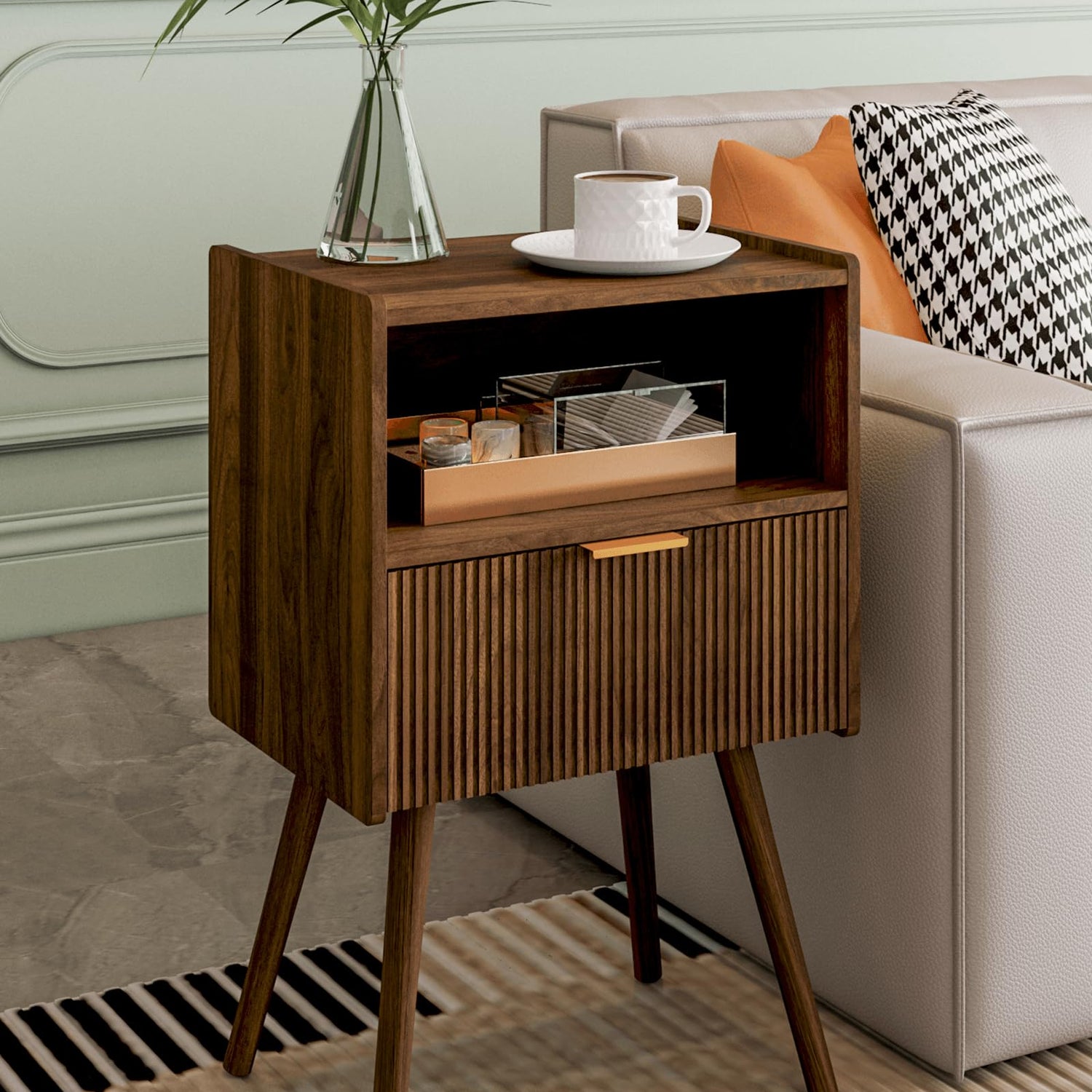 - Embrace an Modern Vibe:Walnut Brown with vertical grain taps,this nightstand emits an modern vibe in your bedroom. It can also catch eyes as a side table or end table throughout the home,adding elegance to home life.