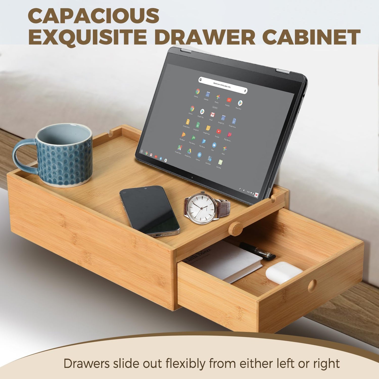 Vekkia Natural Bamboo Bedside Shelf with Drawers - for College Dorm Bunk Beds, Blending Decor and Storage