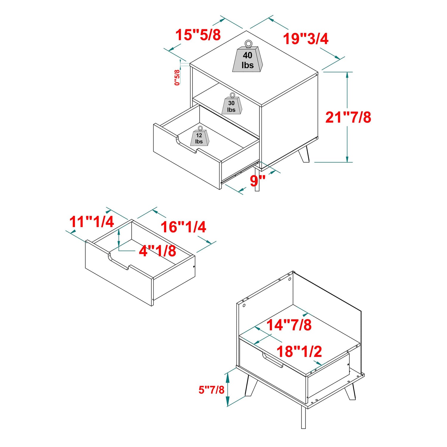 Details: Ready to rev up the style in your sanctuary? Look no further than this simple yet sleek nightstand. Whether it’s at your bedside or sitting by the couch, this piece offers a minimal look with just enough storage space. A single drawer on smooth, telescoping metal glides lends some closed-off storage while the cubby below offers open space for your everyday essentials or nightstand necessities. While the silhouette is simple enough to lend itself to any interior design style, the tapered legs are subtly mid-century modern for a funky twist in your newly organized abode.
