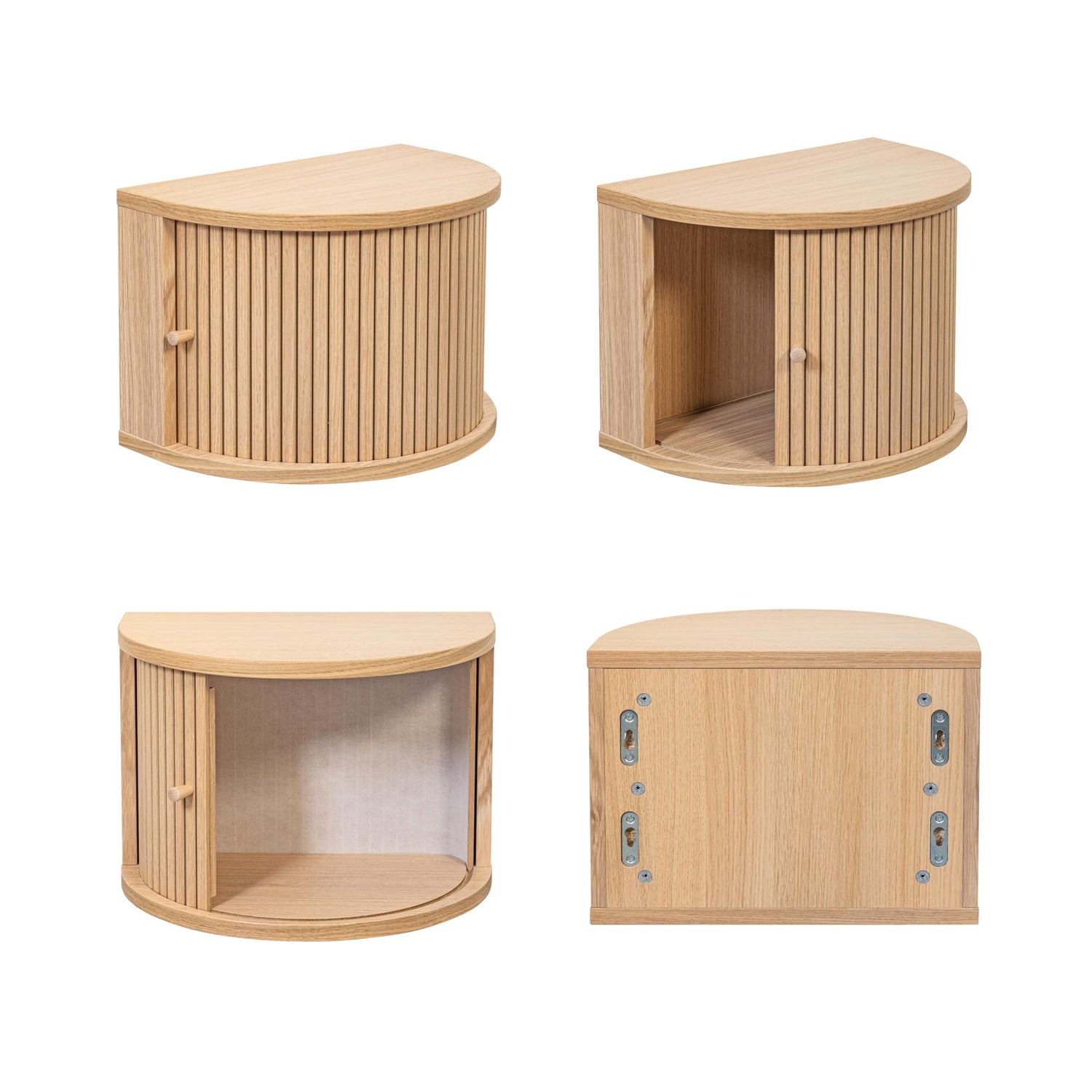 - BRING CHARACTER TO YOUR HOME with a decorative wooden nightstand featuring curvy corners, making it an ideal wall-mounted piece that enhances the aesthetic of bedroom, dining room, living room, or entryway. The sliding door can be set to open from either side during assembly, making the minimalist nightstand adaptable to any room layout. You’ll receive two sets of door knobs — wood & brass.