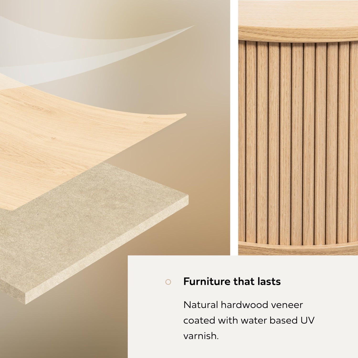 - ENJOY EFFORTLESS STORAGE by maximizing the use of the hidden storage space behind the quietly and smoothly sliding tambour door. Natural oak nightstand (width 15.9 ’’ x height 11.9’’ x depth 10.4’’) provides easy access to books and frequently used items like reading glasses, chargers, and more.