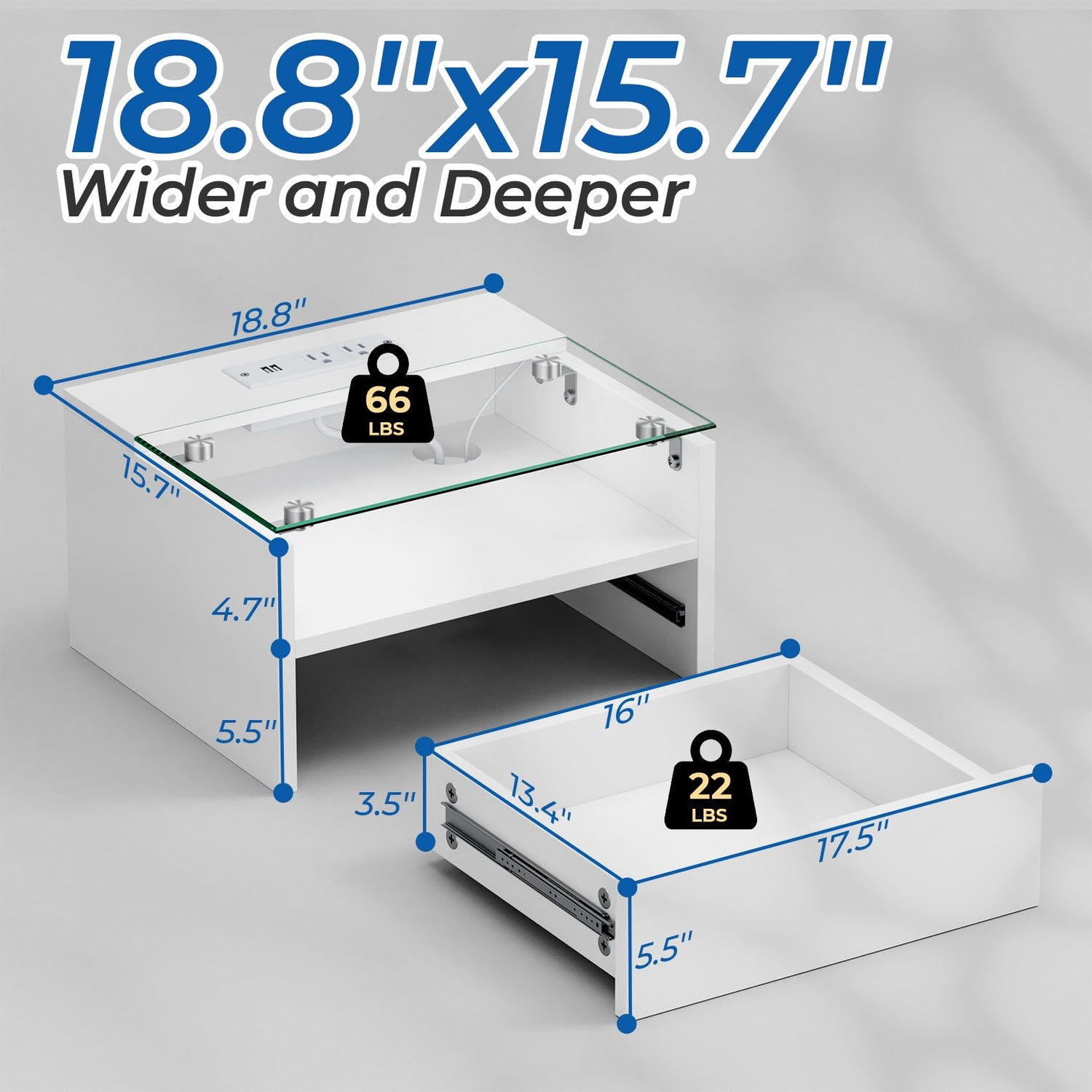 yacchi home Floating Nightstand Set with Charging Station, Floating Nightstand with Charging Station and LED, Night Stand for Living Room, Entryway Wall, Bedroom White Nightstand (1), FN864B1