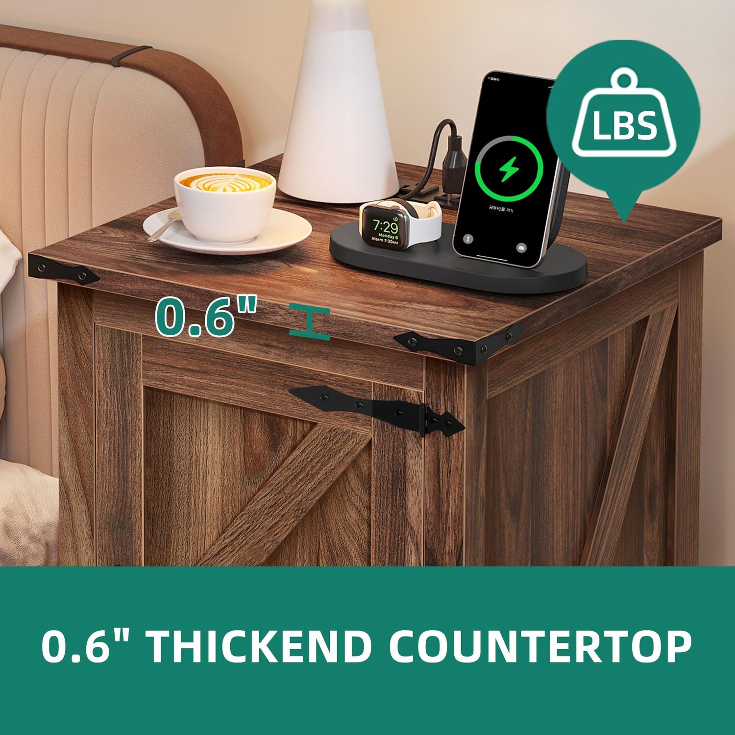 - End Table with Charging Station: This farmhouse End table boasts 2 USB ports, 2 power outlets, no worry about inadequate or hard-to-reach outlets! Makes the desk neater while providing convenience for charging your devices such as cell phones, tablets, and earphones.