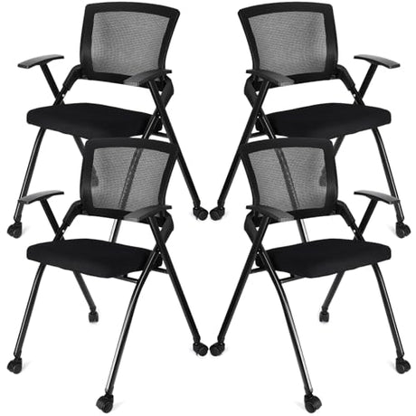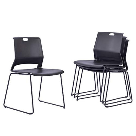 Sidanli Stacking Chairs Stackable Waiting Room Chairs Conference Room Chairs-Black (Set of 4)