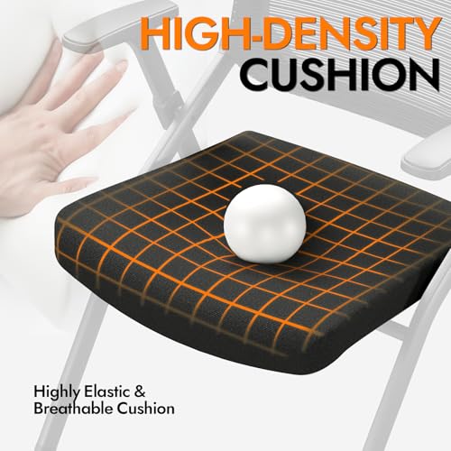 FYLICA Foldable Office Chair with PU Wheels and Smooth Armrest-Ergonomic Mesh Bouncing Back, Stackable Conference Room Chair, Office Guest & Reception & Meeting Chair (Black)