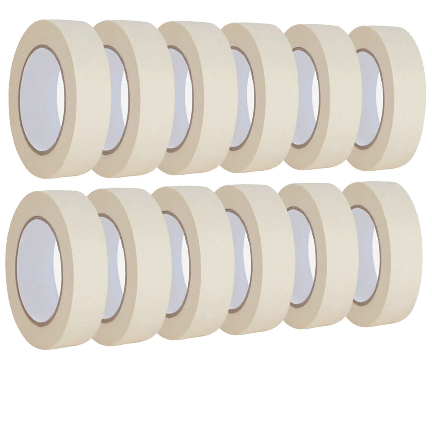 Lazybug studio Masking Tape 1 inch 12 Pack, Adhesive Painting Tape Bulk for General Purpose Use, 1 inch x 55 Yards x 12 Rolls, 660 Yards in Total