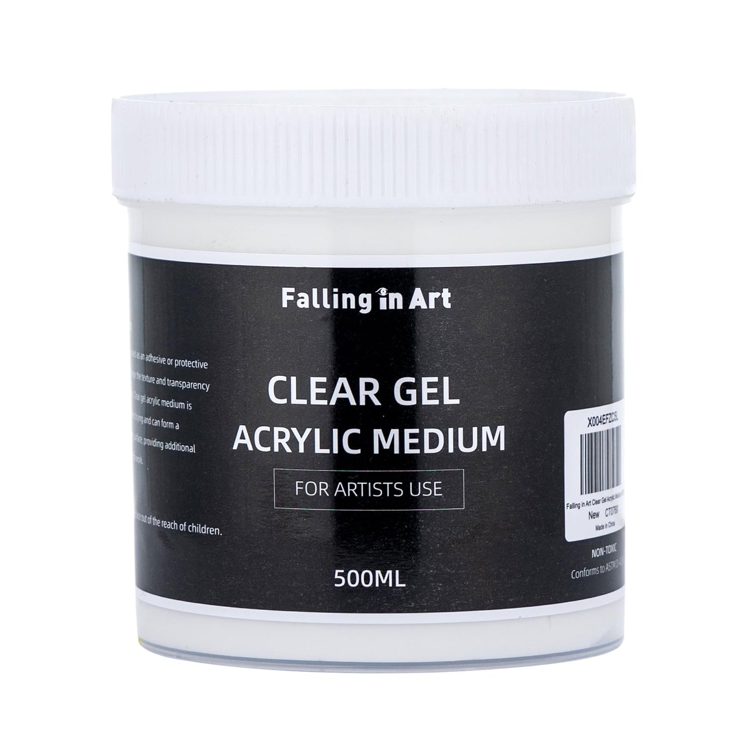 Falling in Art Clear Gel Acrylic Medium, 500ML/16.9Oz Gloss Gel Medium for Acrylic Paint, Ideal for Texture, Layering,and Extending Paint