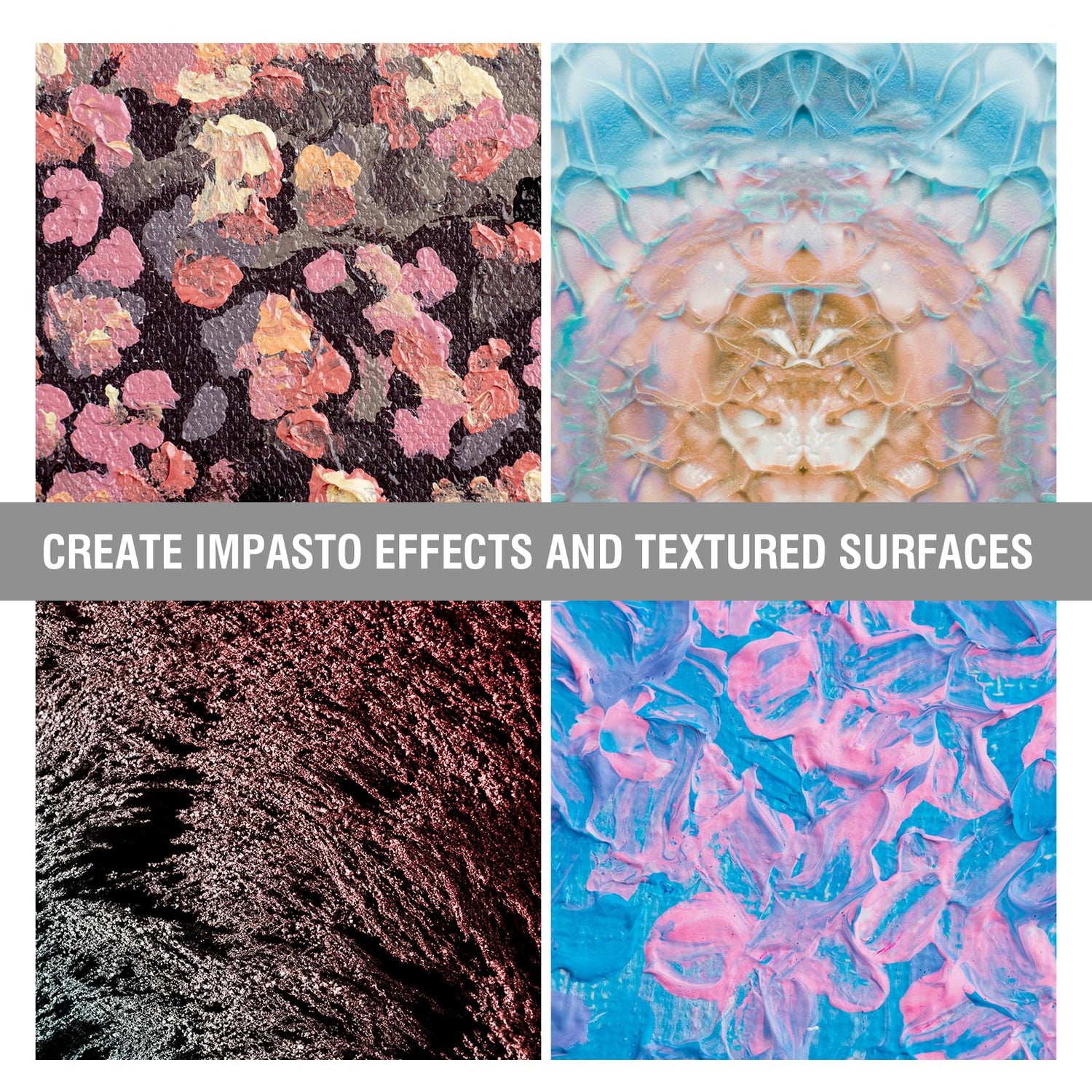 - Impasto Effects: Falling in Art gel medium in a 500ml tub creates dramatic Impasto effects and enhances texture. It provides a thick and creamy texture that retains brush strokes and peaks for added dimension to your artwork
