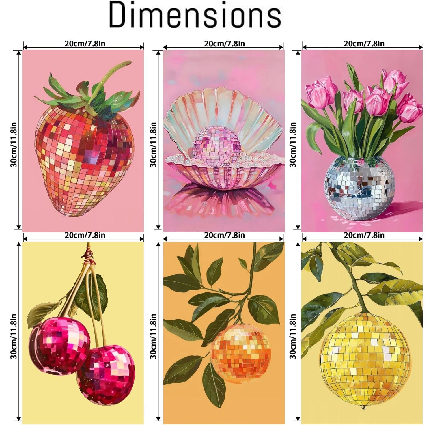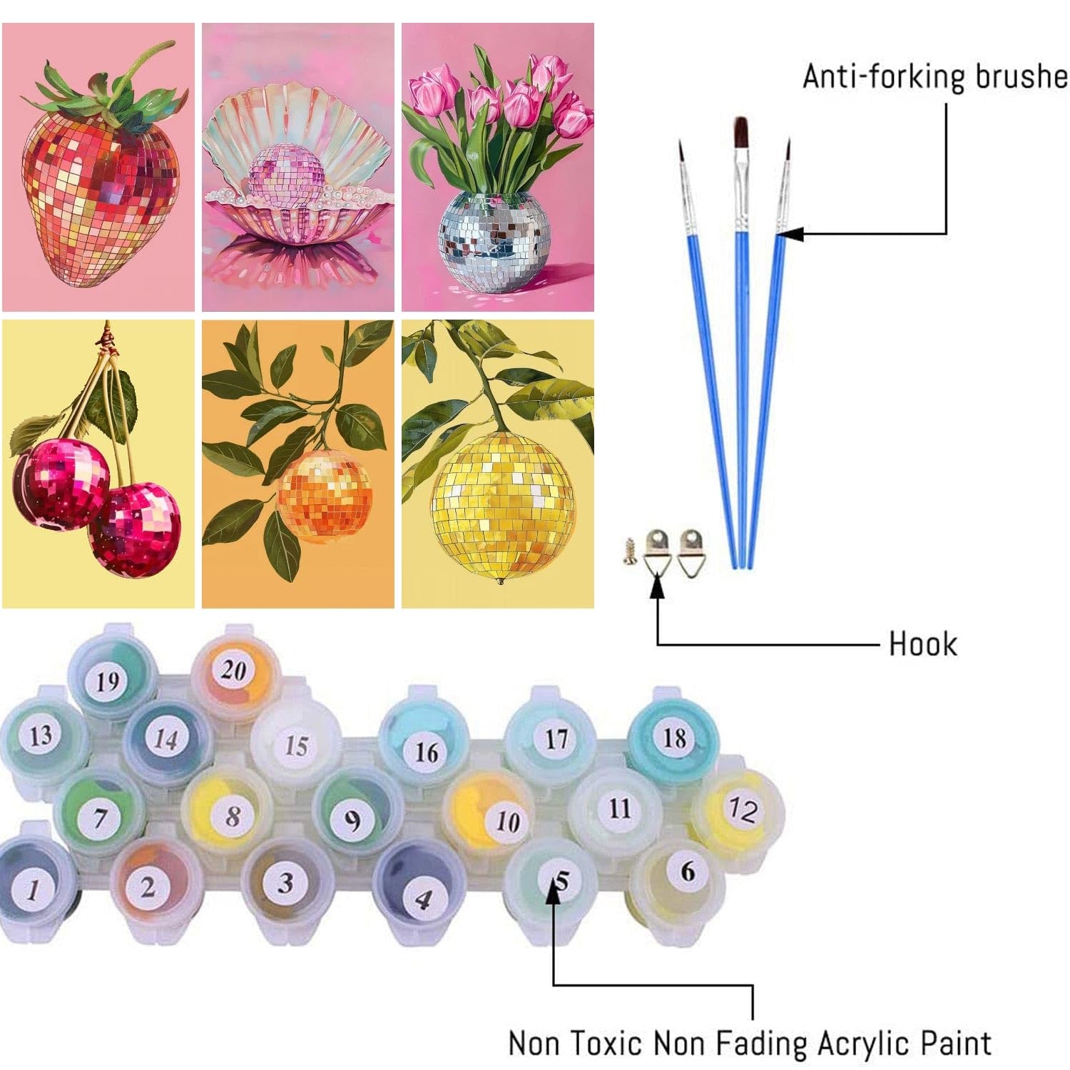 6P Disco Ball Paint by Numbers Kit for Adults, DIY Fruit Adult's Paint by Numbers on Canvas, Easy Acrylic Watercolor Oil Painting by Number Without Frame(8x12 in)
