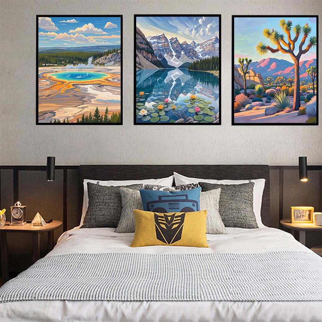 - Easy to paint: According to the numbers on the canvas, select the corresponding paint and apply it on the canvas. Even if you are a novice, you can draw beautiful pictures. National Park landscape oil Painting by Numbers is a perfect way to have a sense of achievement, reduce stress, emotional adjustment.