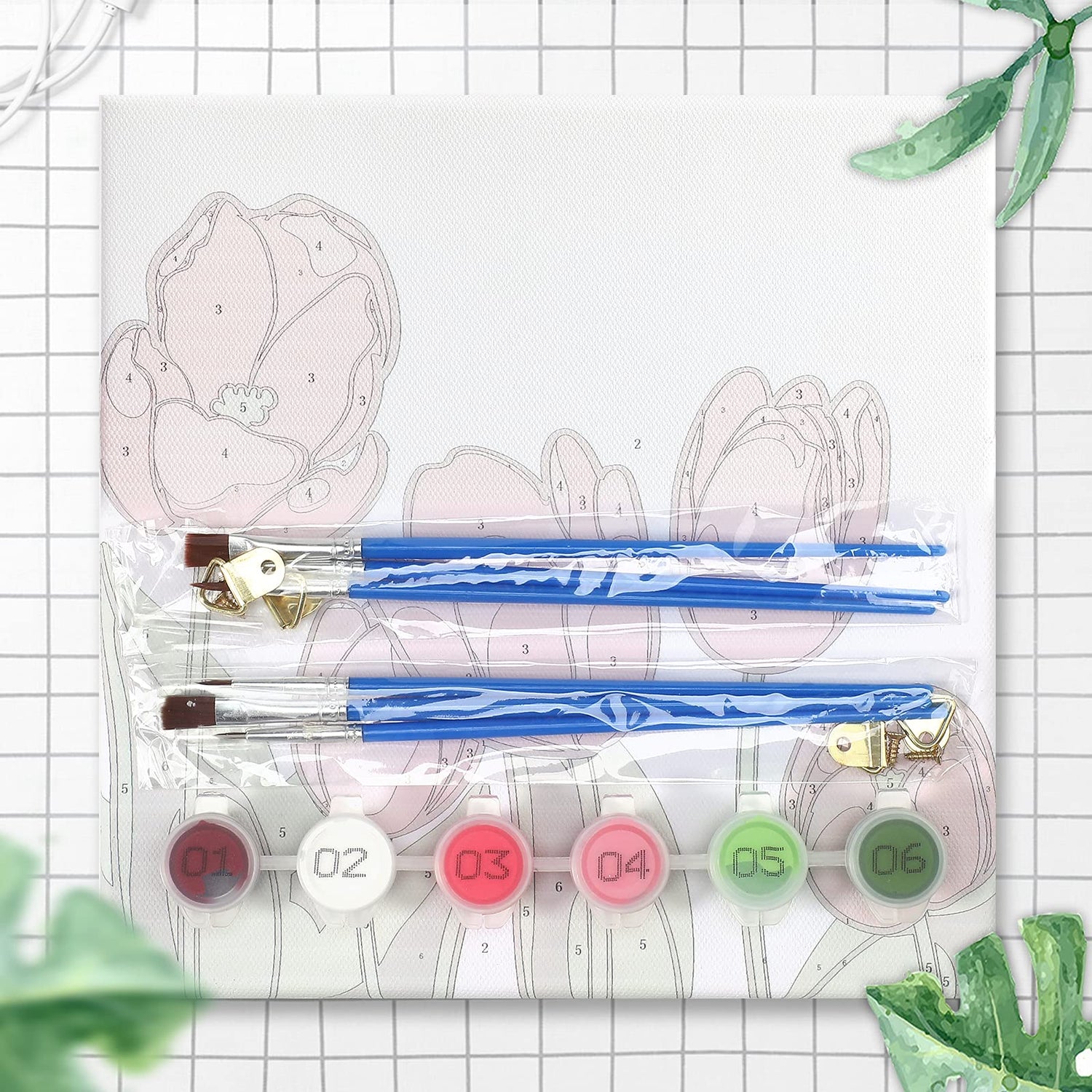 Dynippy DIY Oil Paint by Numbers for Beginner Framed Colourful Canvas Acrylic Oil Easy Painting Kit for Adults Childrens 8x8 inch - (Pink Flower)