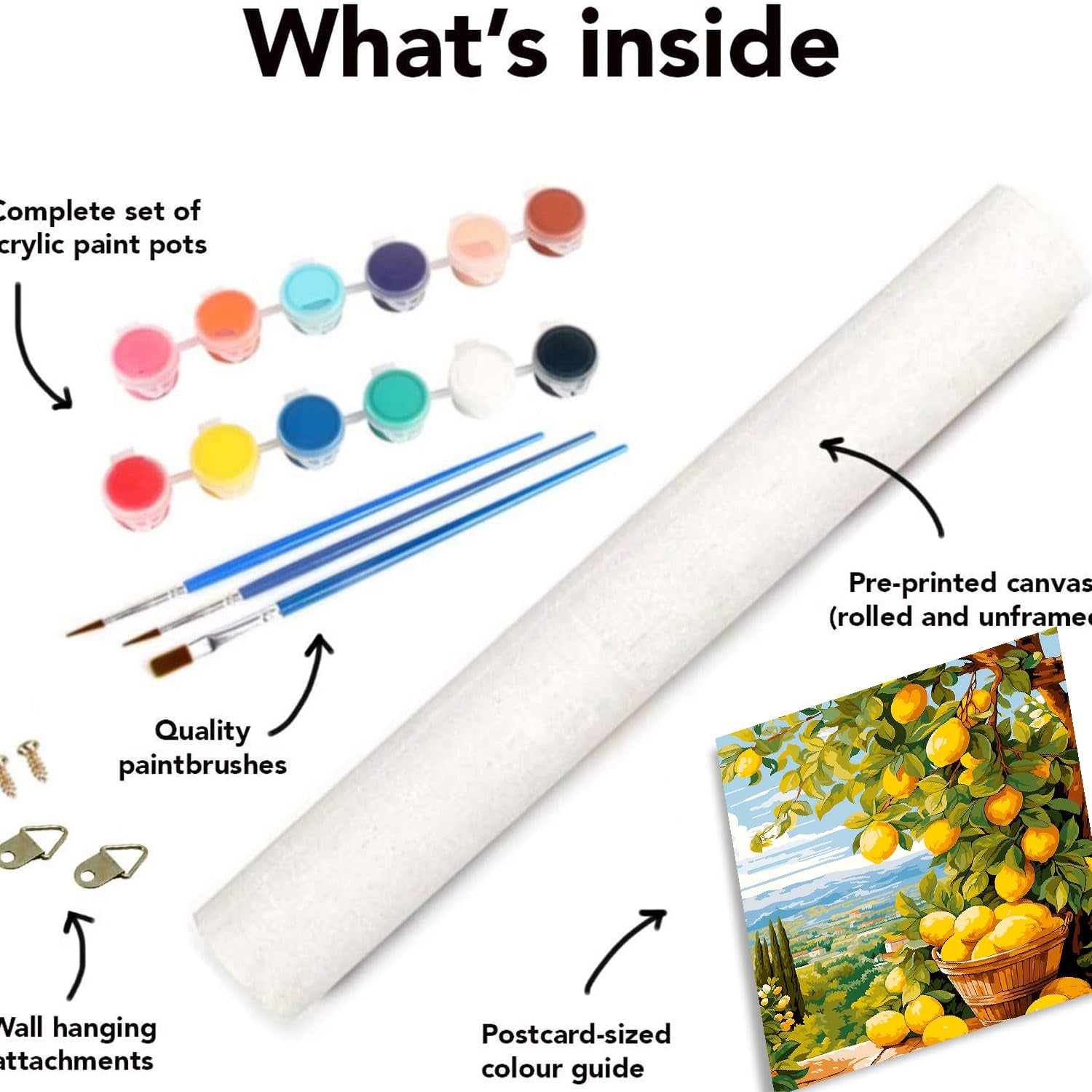 - 🎨 COMPLETE TOOL KITS: DIY paint by numbers for adults has a complete tool kit. The kit contains 3 high-quality paint brushes, matched acrylic paints and nail hooks. Open the package and you can enjoy the fun of paint by number.