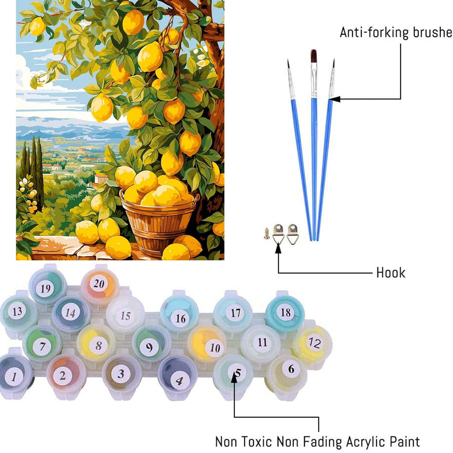 Lemon Paint by Numbers Kits for Adults, DIY Lemon Tree Adult Paint by Number Kits on Canvas, Digital Oil Number Painting for Home Decor (16x20 Inch)