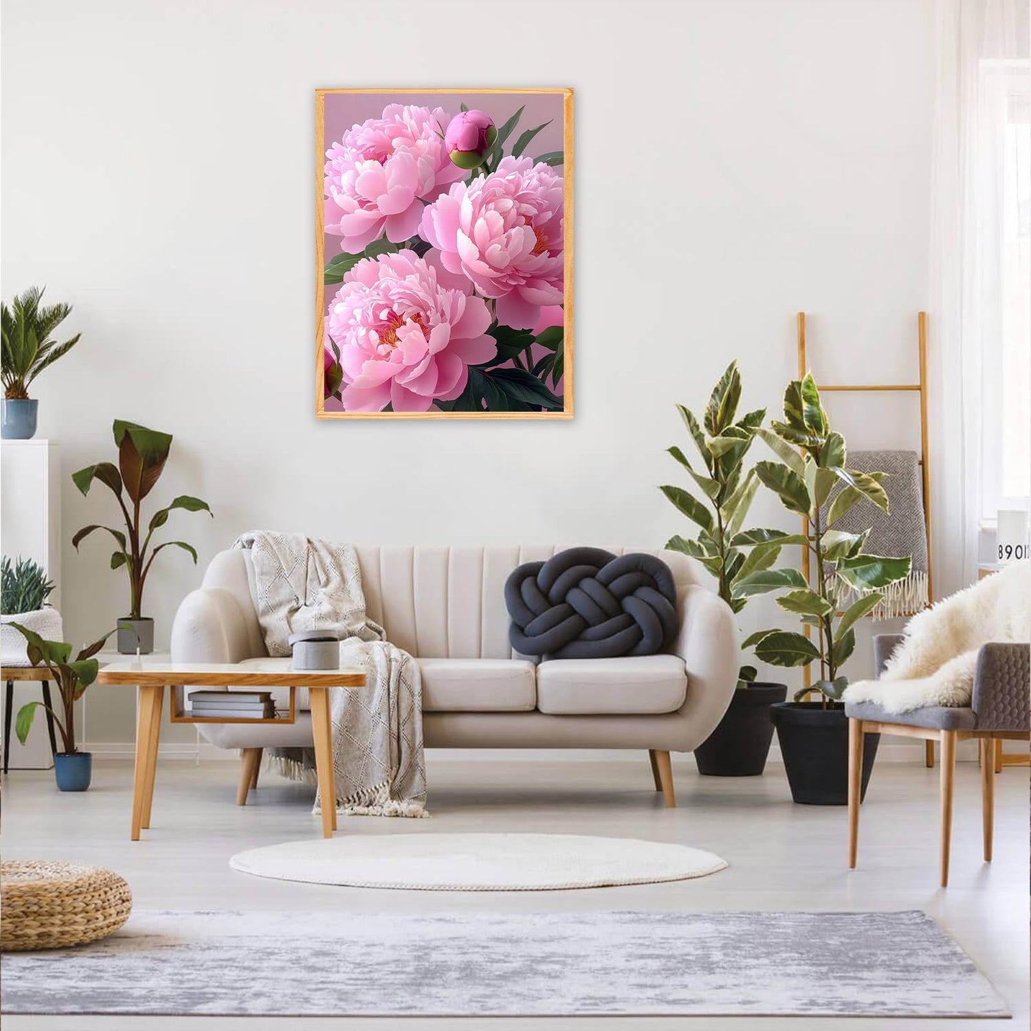 MAXBYE Pink Peony Paint by Numbers for Adults, Flower Paint by Number on Canvas Without Frame, DIY Easy Oil Painting for Home Wall Decor Gift 12x16inch