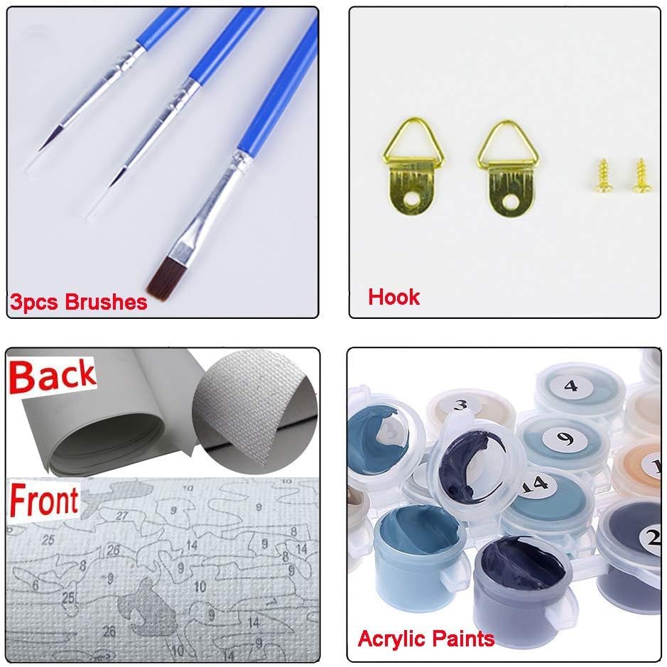 - 3:Easy To Paint - No Paint Mixing or Blending, provide good paint coverage to cover the lines and numbers, enough pigment to cover the numbers with one coat of paint, Paint by numbers suitable for all skills levels adults,beginner, Kids, Student