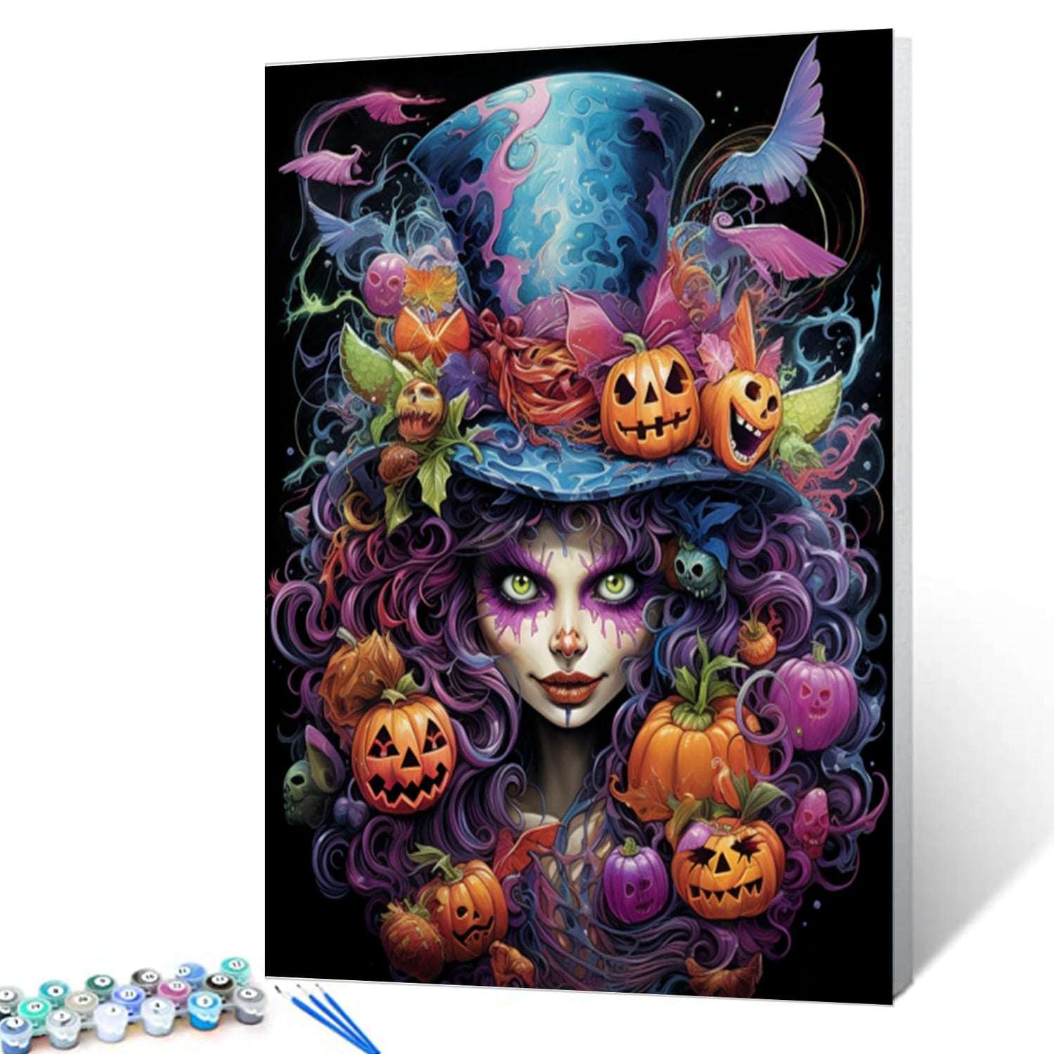 Tucocoo Paint by Number Gril Portrait with Hat DIY Painting On Canvas with Brushes Acrylic Paints Pumpkin Halloween Hocus Pocus Paint by Numbers for Adults Kids Students Beginner 16x20 Inch Frameless