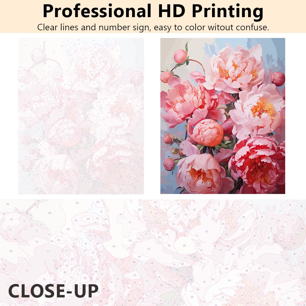 TUMOVO Paint by Numbers Kit for Adults - Bouquet of Pink Peonies Adult Paint by Number Kits, Floral Art Painting, DIY Canvas Kit for Beginners Relaxation, Arts and Crafts for Adults, 16x20 Inch