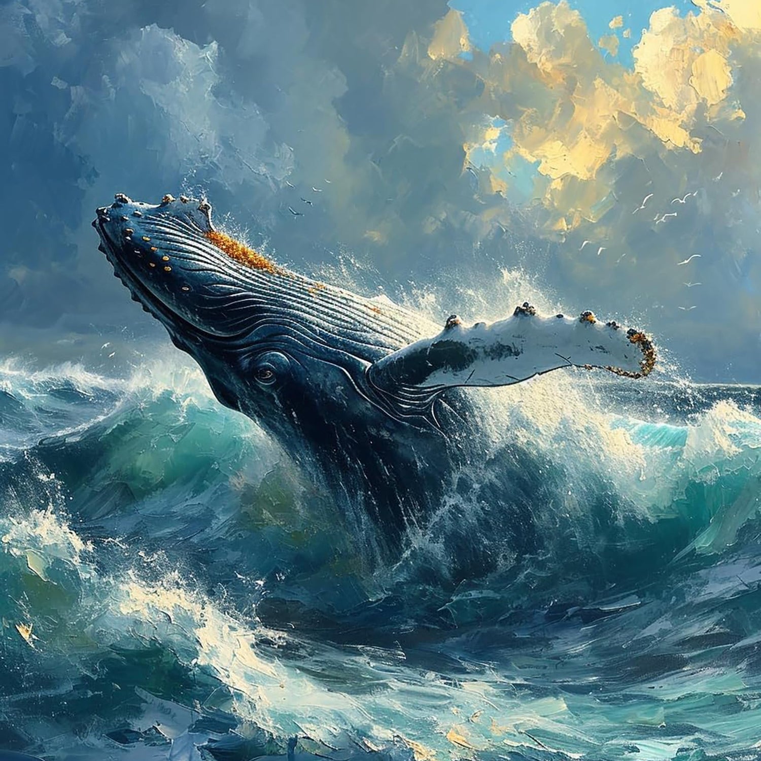 XTXGERL DIY Paint by Number Kits for Adult Beginner, Majestic Humpback Whale Breach, Paint by Numbers Kits for Adults, Canvas Painting Gift Kit for Modern Home Wall Decor, 40x50cm, Bright