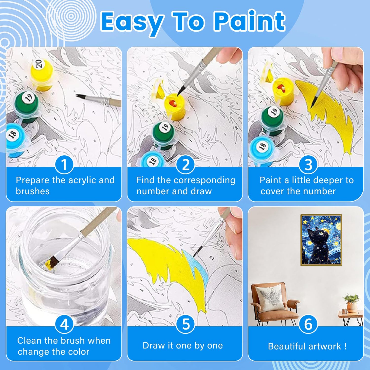 - 【Perfect Gift Idea】: Number painting starry night cat is a meaningful gift for your loved ones on any special days such as Christmas, Thanksgiving Day, New Year, Birthday or other important days.