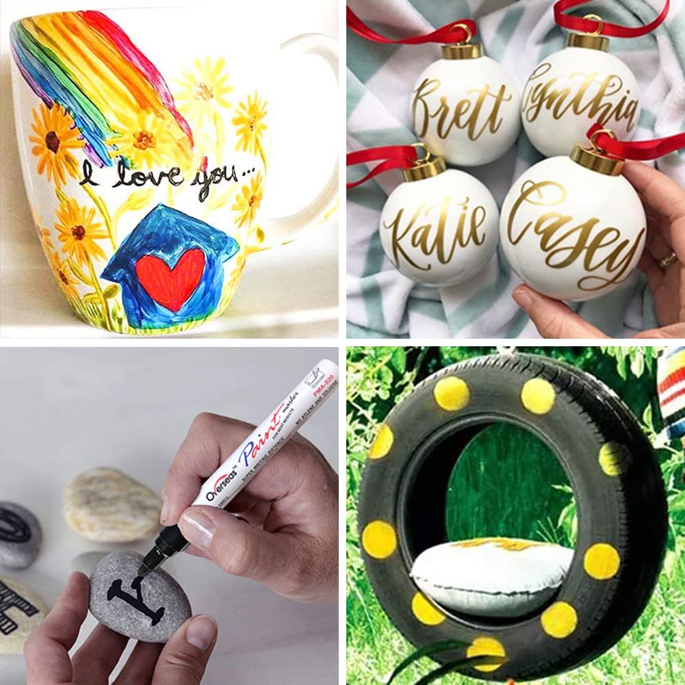 • Various Use: These permanent paint pens can be used on multiple surfaces. You can use on rock, ceramic, wood, leather, plastic, fabric, canvas, stone, glass, metal, chalkboard, craft supplies, etc