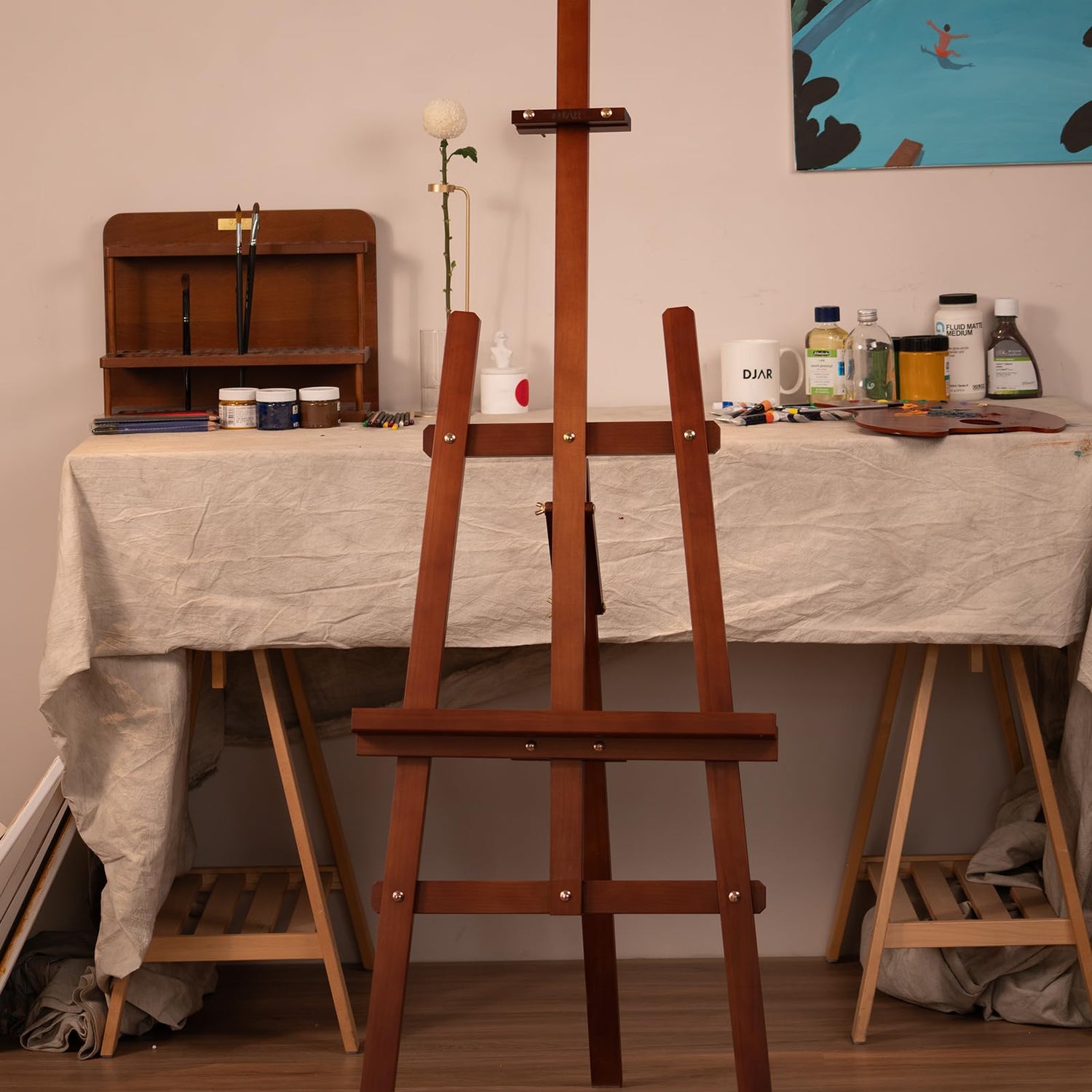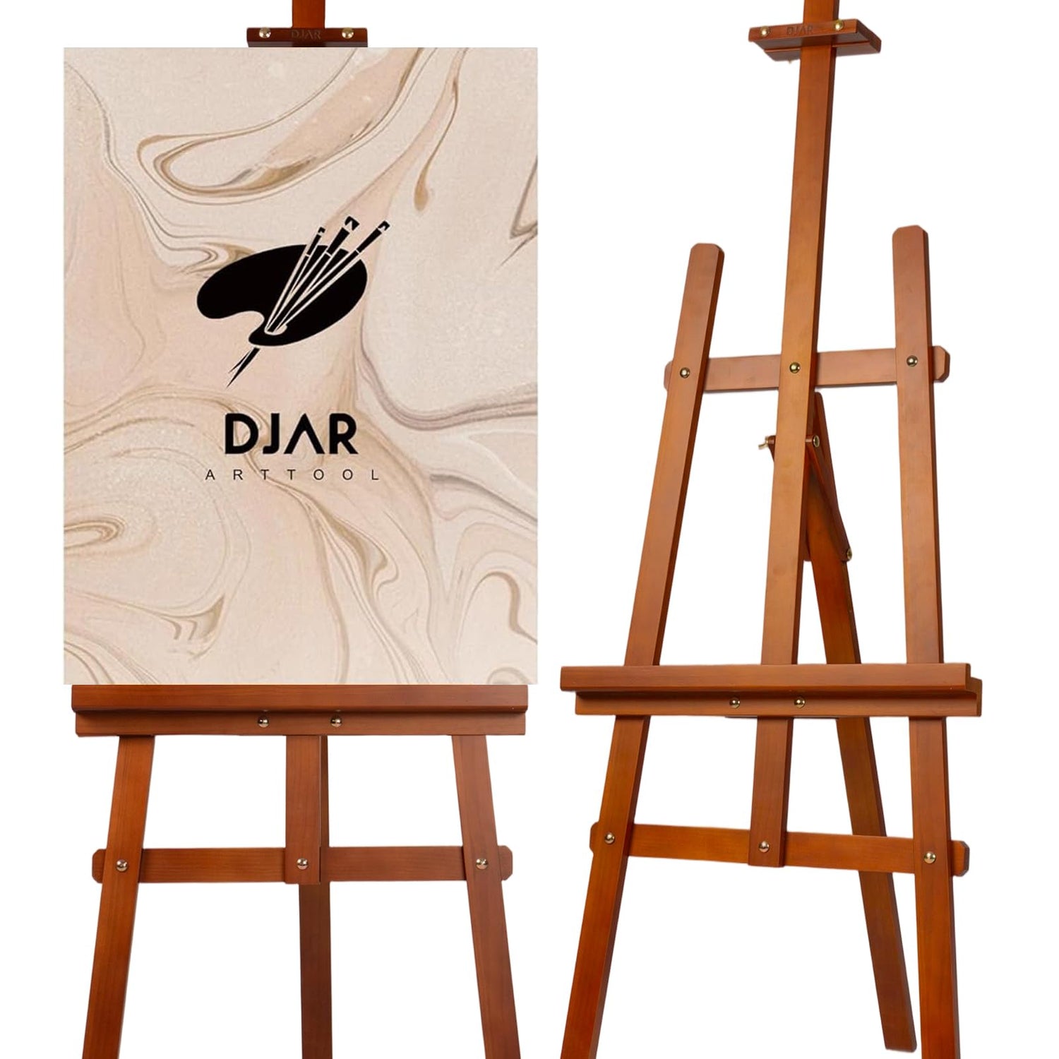 DJAR Wooden Art Easel for Painting,Adjustable Pine Wood Floor Easels for Adults Artist Beginners,Hold Canvas up to 39'',Tool-Less Installation Easel,Walnut