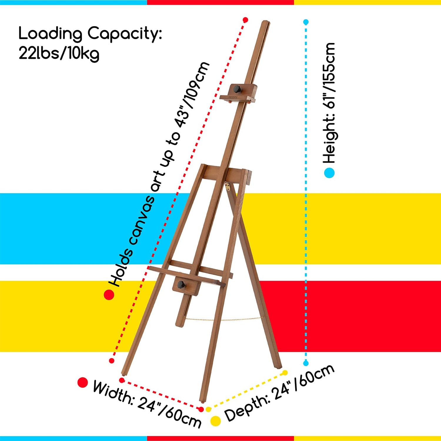 • Sturdy A-frame Design: Wooden easel accommodates panels or canvases up to 43” high, both the canvas grippers feature non-skid rubber tips on the grippers help to keep the canvas in place while painting