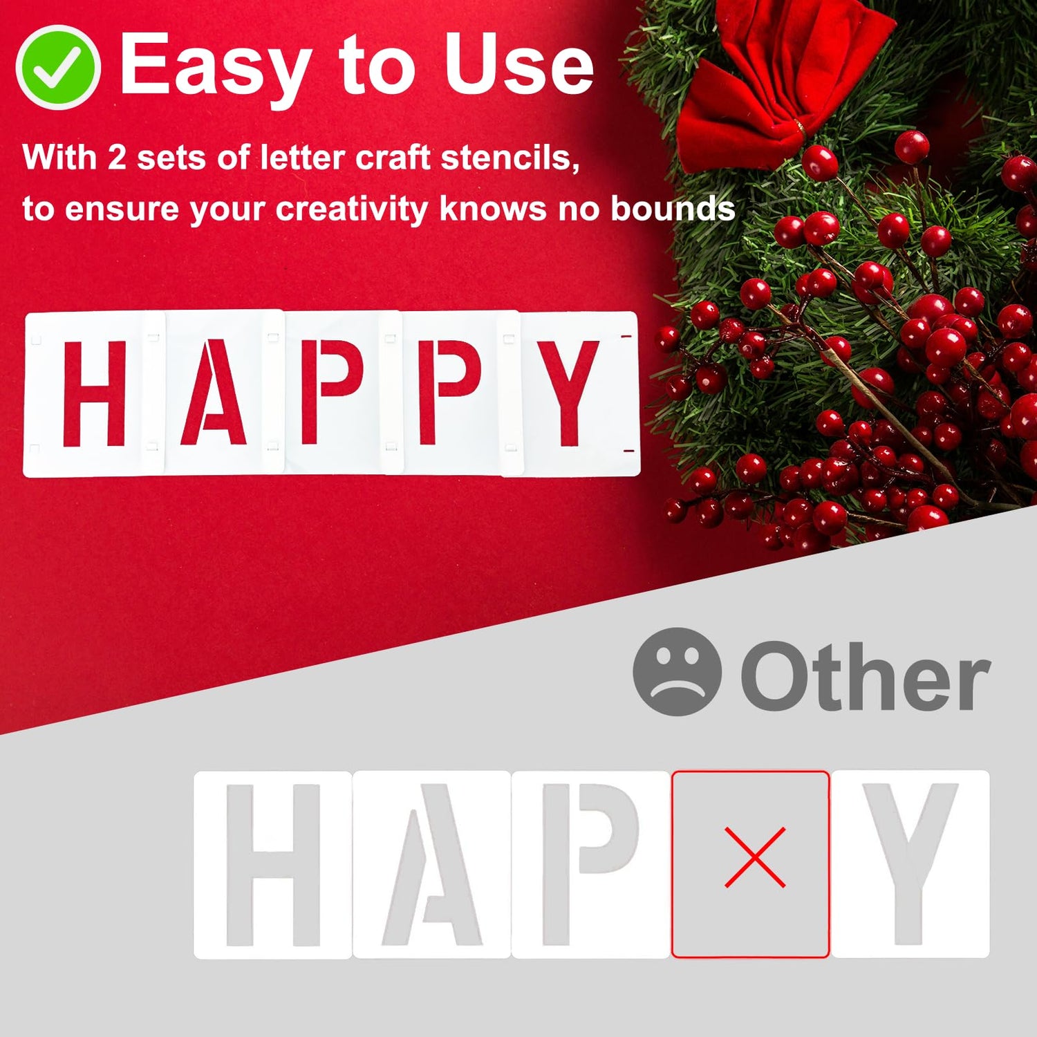 - 【Premium Material】The letter stencils are made of waterproof PET material, these paint stencils are flexible, durable, washable, and reusable. They are lightweight yet sturdy, resistant to wear and tear, and won’t crack or deform. Edges are smoothly finished with no sharp corners, making them non-toxic and safe.