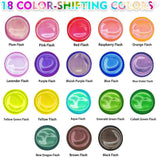 - COLOR SHIFT EFFECT: Set of 18 Colors Chameleon Paints, Each unique color features iridescent effect with shimmery metallic finish, shifts with the change of light.