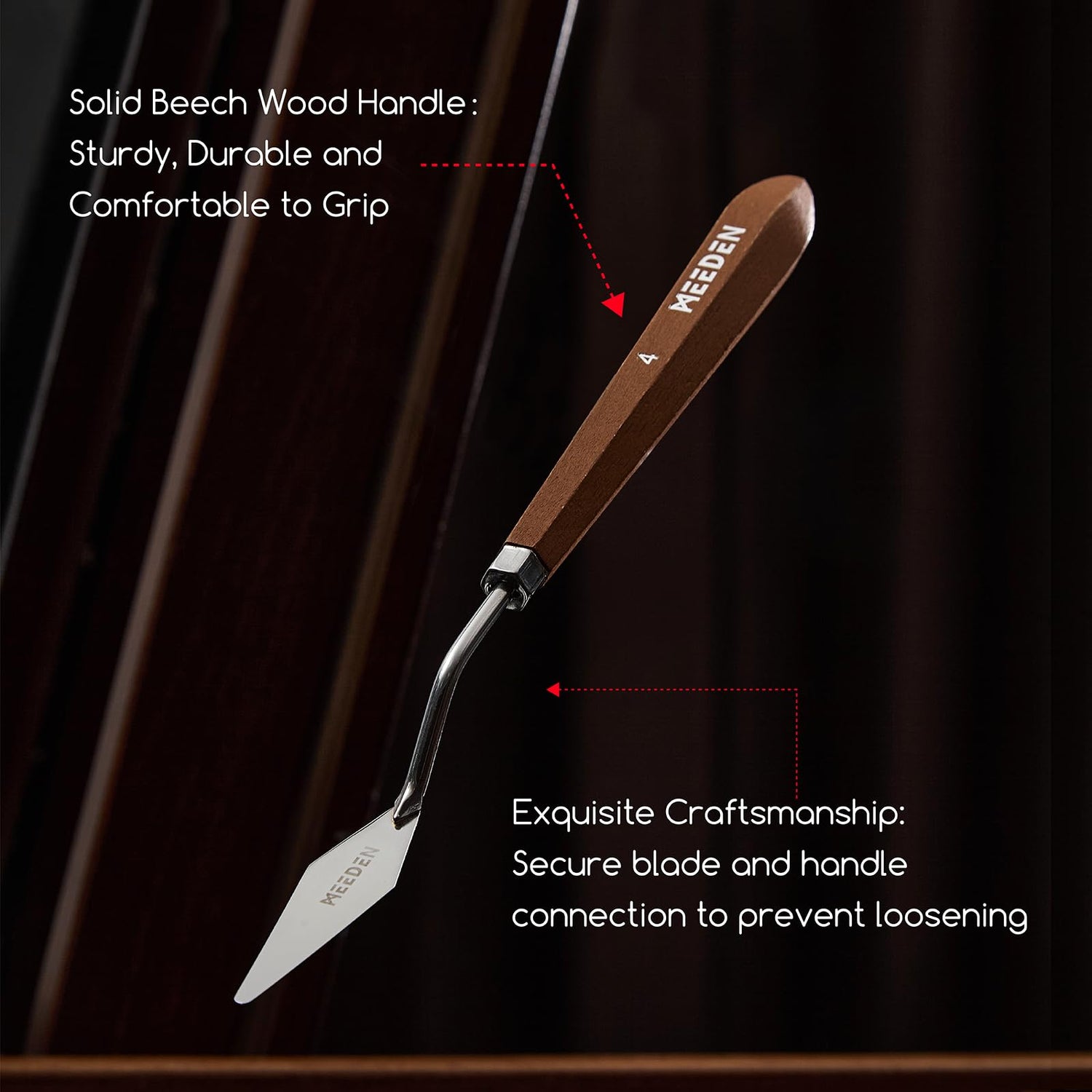 • Exceptional Flexibility: MEEDEN professional palette knives are made from superior stainless steel, offering excellent elasticity to handle various pressure levels. Whether for fine scraping, texture creation, or large-area coverage, the blade adapts and quickly returns to its original shape after use, providing long-lasting reliability and stability.