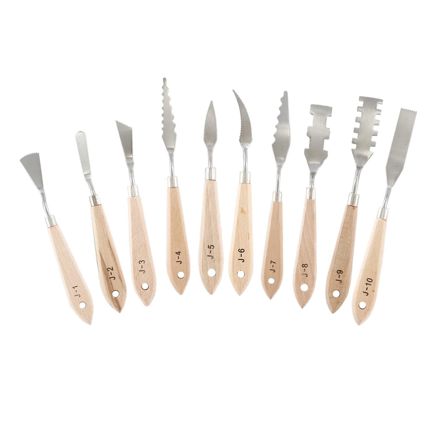 • Package Included: 10 x Palette Knife Painting Tools with different shapes and size, includes 10pcs wooden handle painting knife set. Length: 6.89"-8.58"/17.5cm-21.8cm.