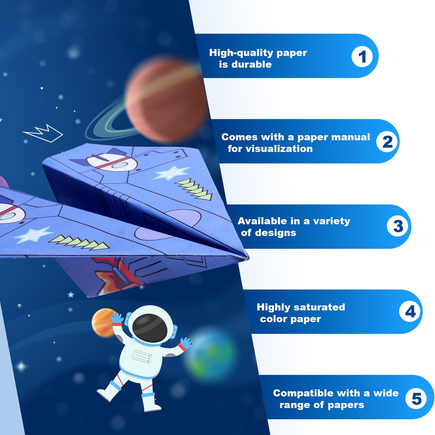 • High Quality and Durable Material:Our paper airplane kits are made of high quality and durable paper, double-sided thickening process, repeated folding without leaving marks, to ensure that each paper airplane can withstand multiple folding and releasing without tearing or damaging easily.16 Gradient Star Colors, Bright and Colorful Designs not only attract children's attention, but also make them visually pleasurable experience during the process of making.