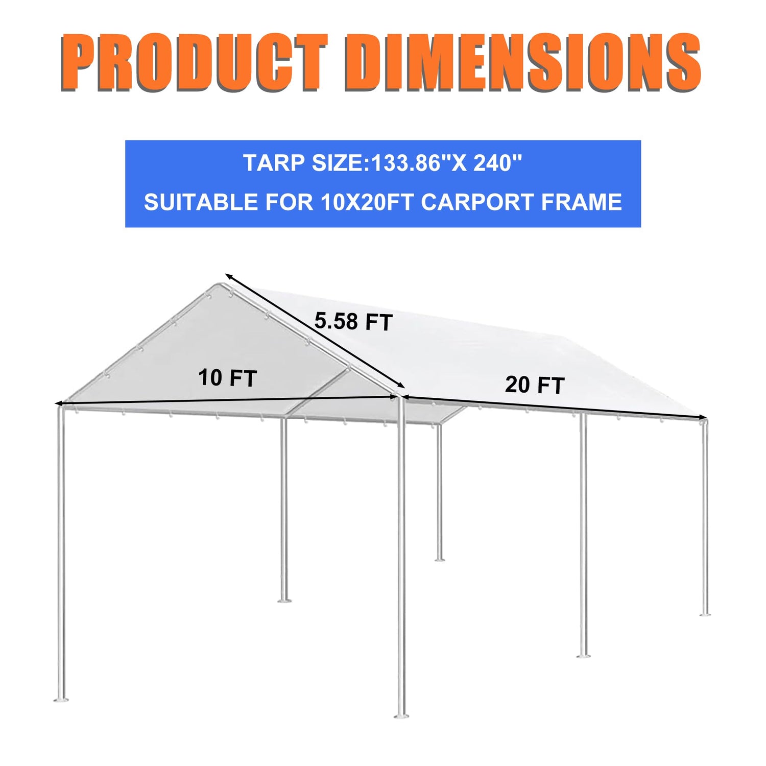 10 x 20 Ft Carport Replacement Canopy Cover, Heavy Duty Top Cover for Car Garage, Tear-Proof, Anti-UV & Waterproof Party Tent Shelter Tarp with 42 Ball Bungees (Only Cover, Frame Not Include) White