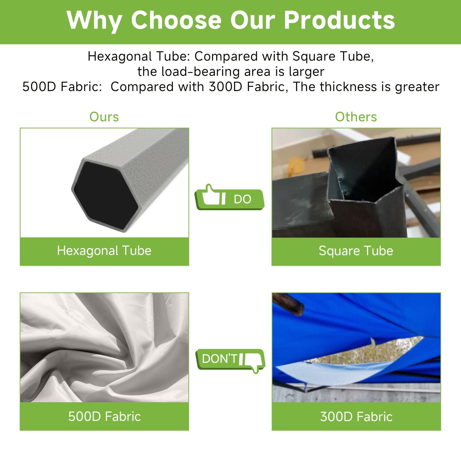 - High Grade Steel Frame: The durable, corrosion-resistant steel, compared with the traditional four-sided edge, the six-sided edge has six support points, which enhances stability and wind resistance