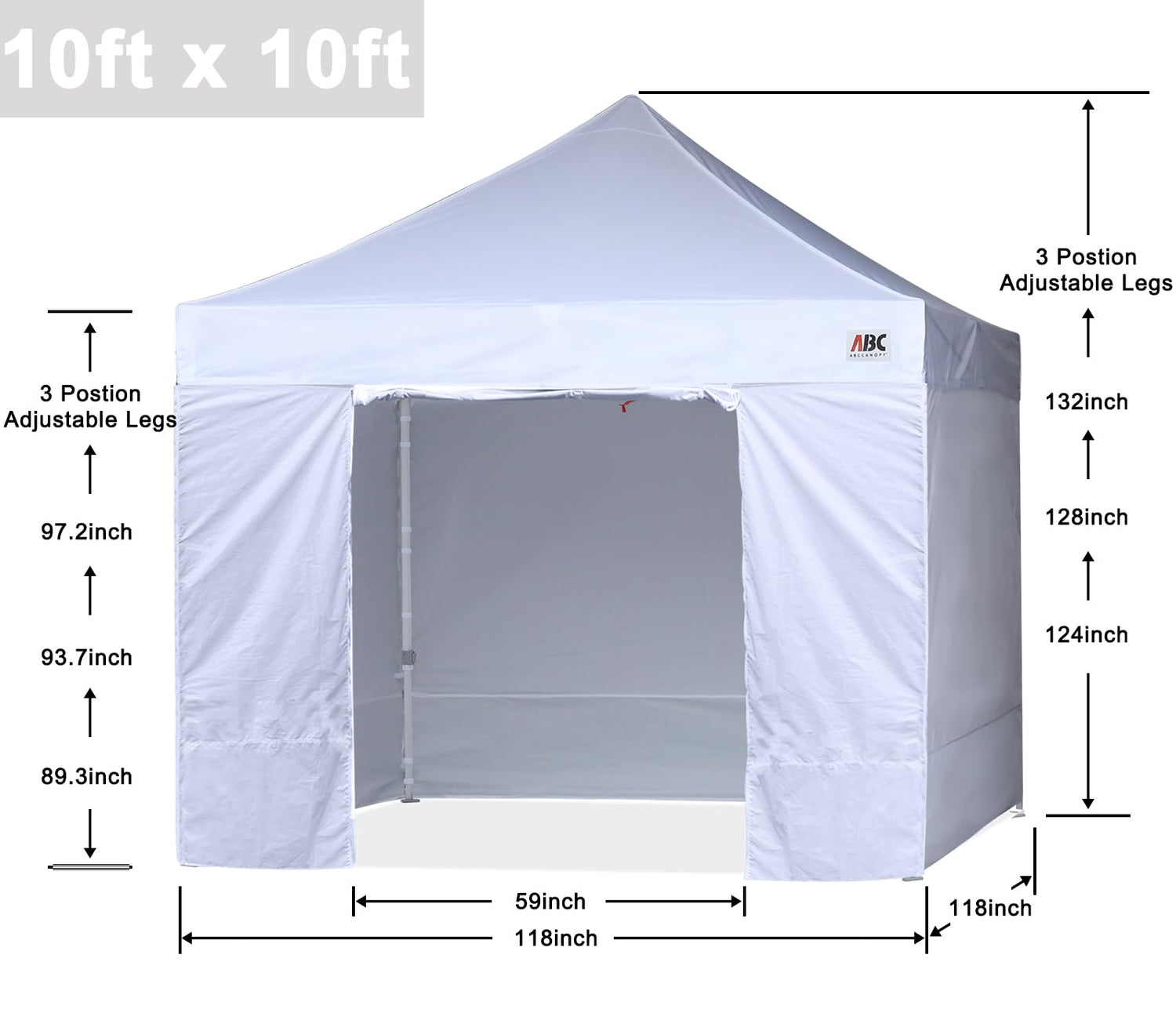 ABCCANOPY Easy Pop Up Canopy Tent with Sidewalls 10x10 Commercial -Series, White