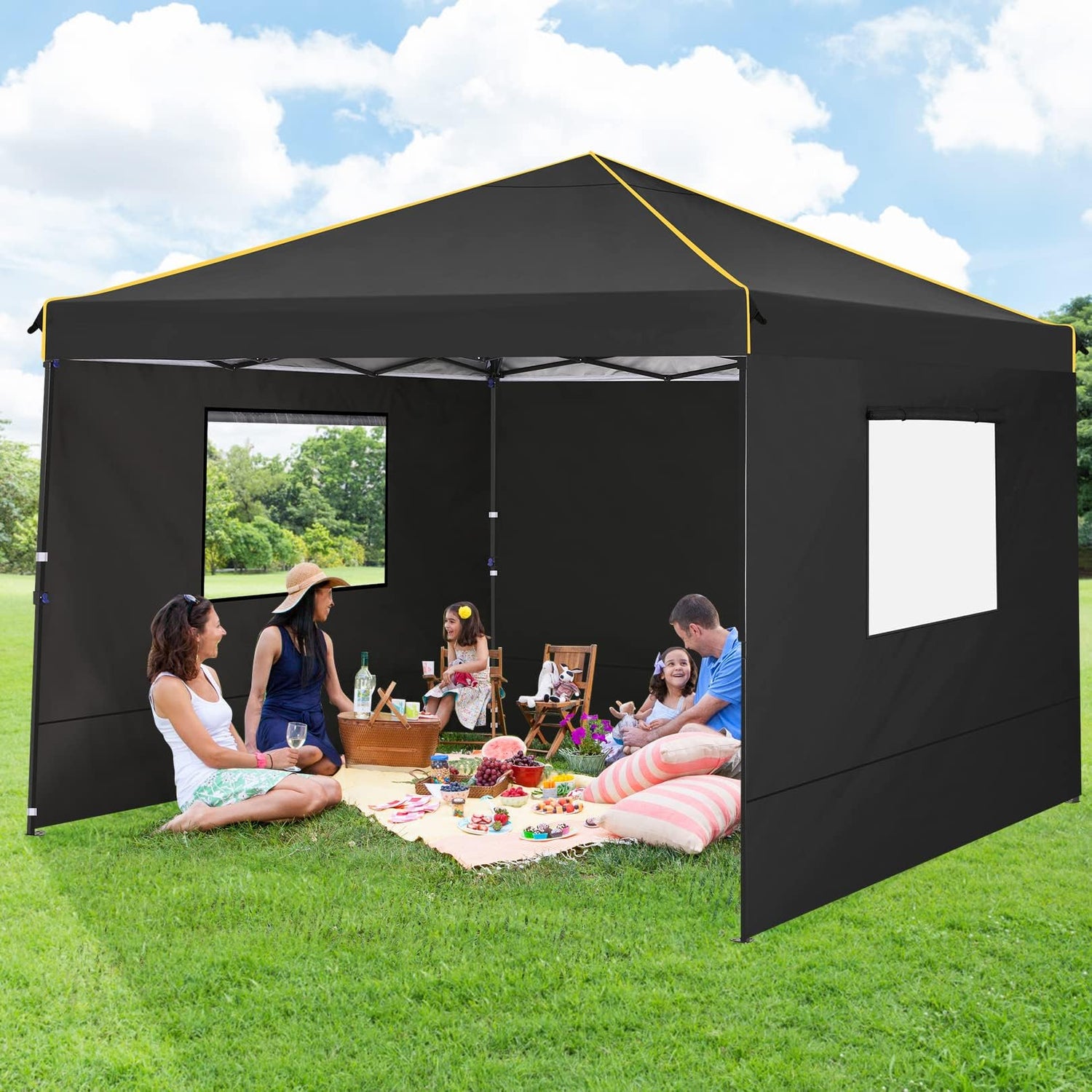 - 🔹The package includes: 10 x 10 Ft pop up Canopy Frame, 10 x 10 Ft canopy top tarpaulin, removable oxford cloth side walls, 1 handbag, 4 tent stakes and 4 ropes. 4 side walls can be installed or disassembled according to different occasions.Ground stakes and guy ropes for extra support. keep your belongings safe and secure.