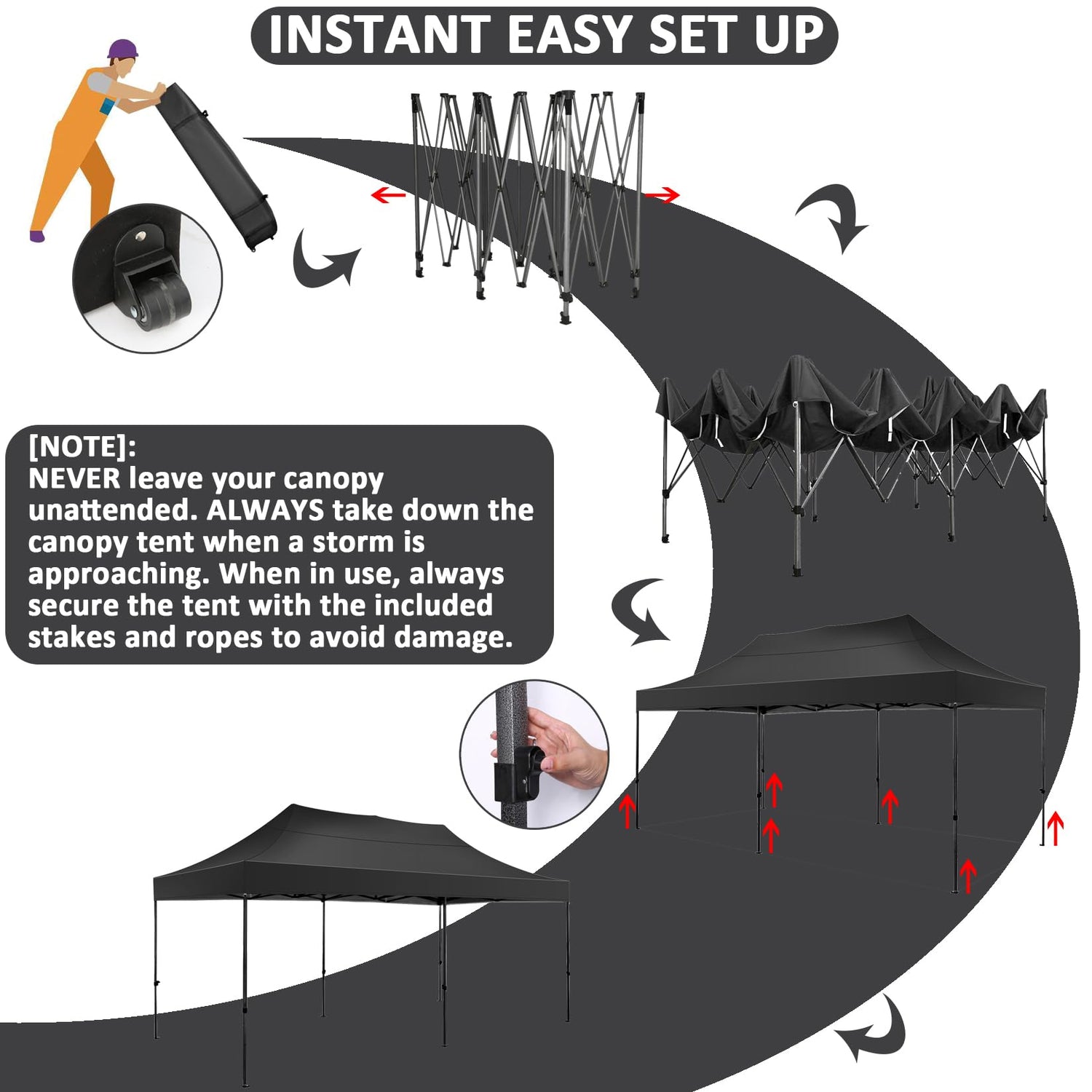 COBIZI 10x20 Pop Up Canopy Without Sidewall,Heavy Duty Canopy UPF 50+ All Season Wind Waterproof Commercial Outdoor Wedding Party Tents for Parties Canopy Gazebo with Roller Bag(10 x 20 ft Black)